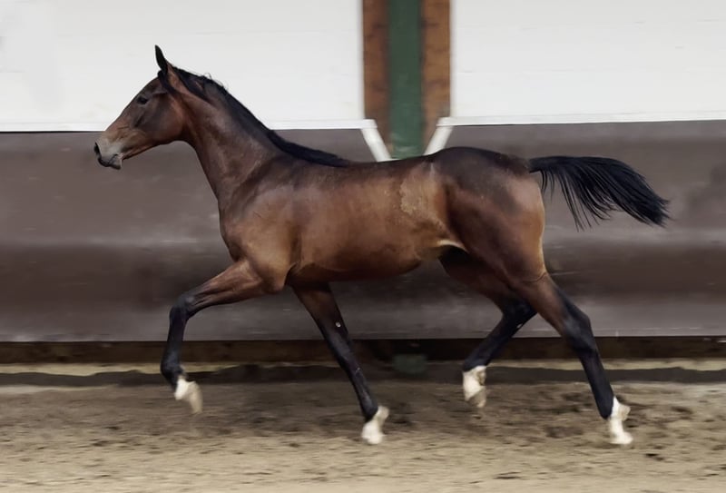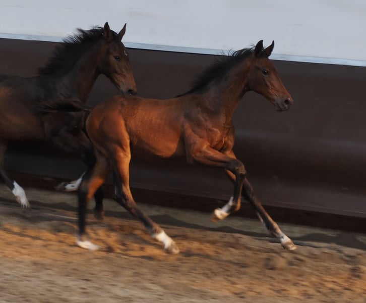 Großrahmiges Nachwuchspferd mit ganz viel Bewegungsqualität und enorm viel Springvermögen! Durch Cafe au lait als Vater und Quattro B auf der Mutterseite (MMV) doppelt abgesichert für den Dressur- und Springsport gleichermaßen. Stark geprägt von seinem Muttervater Conthargos zeigt dieser großrahmige Wallach unglaublich viel Potential am Sprung! Definitiv ein Anwärter für die große Tour! Da früh geboren, ist er bereits sehr weit entwickelt. Wird im Januar bereits 3jährig. Momentan wird er anlongiert und auf das Anreiten vorbereitet. Der Vater Cafe au lait, Siegerhengst seiner Körung, HLP Sieger und BuCha Finalist, war selbst siegreich in der schweren Klassen und hat sich in den letzten Jahren einen Namen als Doppelvererber mit Spitzennachzucht gemacht. So wurde Cafe's Casimir" (Cafe au lait x Calido x Grannus) gefeierte Preisspitze der Oldenburger Eliteauktion, ist bereits in jungen Jahren Seriensieger in S- Dressuren und international Intermediaire I siegreich. Stute Kasselmanns Cafe's Caletta (Cafe au lait x Calato) ist ebenfalls bereits S-Dressur platziert und international Grand Prix siegreich. Cafe's Matts (Cafe au lait x Don Frederico) wurde zweitteuerstes Dressurpferd der Oldenburger Summer Mixed Sales. Weitere Jungpferde aus springbetonten Mutterstuten sind bereits mehrfach in Dressurpferdeprüfungen A bis M platziert und sind bemerkenswert bewegungsstark und kopfklar. Dass die Cafe au lait Nachkommen im Springsport bis zur schweren Klasse überzeugen steht außer Frage, so zum Beispiel aus unserer Zucht: Cafe's Champus: gekört, Vizeweltmeister der jungen Pferde Cafe Junior: gekört, international erfolgreich in Saudi Arabien Cafe's Columbo: gekört und sporterfolgreich in Frankreich Cafe's Don Rubin: gekört, 4jährig als jüngstes Pferd Bronze beim Dobrocker Deisterchampionat. Jetzt 5jährig mehrfach siegreich in Springpferde L, M platziert und qualifiziert zum BuCha Cafe`s Deconi: gekört, grade 3jährig 50 Tage Leistungsprüfung mit Noten bis 9,0 abgelegt! Stationiert bei Paul Schockemöhle zeugte Cafe au lait schon etliche international erfolgreiche Springpferde, u.a. "Royce", siegreich im FEI CSI5* $500,000 Rolex Grand Prix Wellington. Cafe au lait selbst war unter Philipp Weishaupt Bundeschampionatsfinalist und ist bis S*** Springen erfolgreich gewesen, ist aber auch mit drei sehr guten GGA ausgestattet und dressurmäßig auf S Niveau ausgebildet worden. Unsere Fohlen bekommen täglich Mineralfutter und Fohlenstarter, regelmäßig EQUISTRO Haemolytan und Ipaligo Foal, Wurmkuren und Schmied sind natürlich ebenfalls selbstverständlich. Auch die Muttertiere bekommen die ganze Trächtigkeit hindurch spezielles Stutenfutter, täglich Saftfutter und Leinöl, sowie Heu ad libitum. So ist unsere Nachzucht stets im besten Gesundheitszustand! Weitere Fohlen und Nachwuchspferde aus eigener Zucht auf Anfrage. Ein kleiner Teil ist unter den anderen Anzeigen zu finden. Inzahlungnahme von passender Zuchtstute möglich. Videoanfragen etc. ausschließlich vorab via WhatsApp möglich. Ein aktueller sehr guter Röntgen Tüv liegt bereits vor.