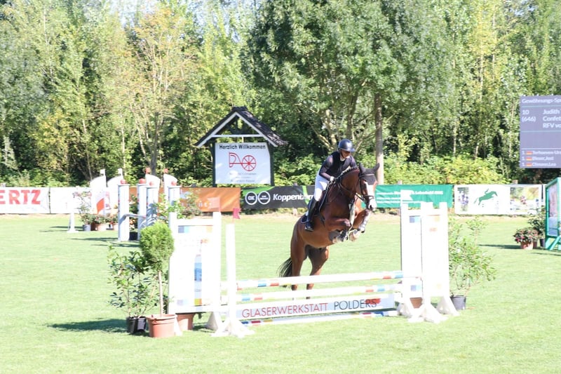 Confetti, 4-year-old gelding, show jumping talent with a lot of potential. He has been gently trained according to his age, up to show jumping class A. His half-sister Cristella S was a series winner in show jumping competitions A + L, a finalist at the Bundeschampionat and the World Championship for young show jumpers, and has been placed multiple times in national and international M + S show jumping competitions.