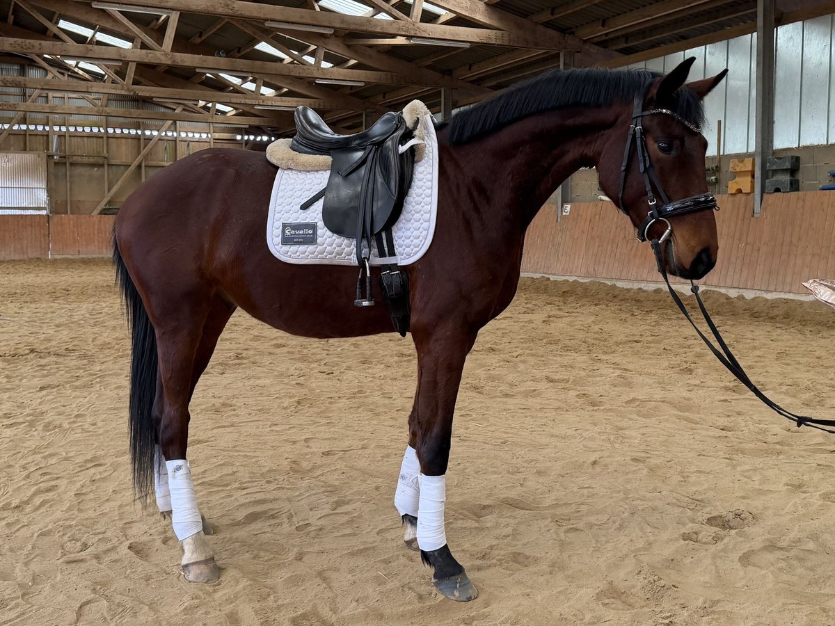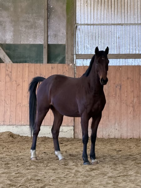 Oldenburger Wallach, 4 Jahre, ca. 167 cm – talentierter Nachwuchs mit viel Potenzial Zum Verkauf steht ein 4-jähriger Oldenburger Wallach mit einem aktuellen Stockmaß von ca. 167 cm. Er befindet sich altersgerecht in Ausbildung, zeigt sich dabei stets lernwillig und motiviert. Mit weiterer Förderung ist von einer positiven Entwicklung auszugehen – der Preis steigt entsprechend bei weiterer Ausbildung. Er ist sowohl im täglichen Umgang als auch unter dem Sattel sehr lieb und unkompliziert. Für sein Alter präsentiert er sich bereits angenehm abgeklärt, aufmerksam und zuverlässig. Auch im Gelände zeigt er sich unerschrocken und läuft in der Gruppe entspannt, alleine wurde noch nicht getestet. Ebenso hat er schon die ersten kleinen Sprünge unter dem Reiter gemeistert. Er verfügt über eine gute Grundqualität der Gangarten und bringt beste Voraussetzungen für eine weitere sportliche Förderung mit. Wird gerade auf sein erstes Turnier vorbereitet. Ein vielversprechender Nachwuchswallach für ambitionierte Reiter, die sich ein junges Pferd mit Perspektive wünschen. Es handelt sich hier um keinen Notverkauf und er wird nur in nachweislich gute Hände verkauft. Der Preis ist wenn alles passt verhandelbar. Bei ernsthaftem Interesse freuen wir uns über ein Kennenlernen.