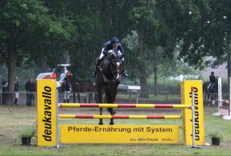 De su padre, (cuyas fotos hemos publicado), quien fue el ganador de la prueba en Neustadt-Dosse, ha heredado el talento para ambas disciplinas. Se tomarán fotos del joven de tres años lo antes posible y se enviarán posteriormente. Cabe destacar también su carácter amable y afable, muy cercano a las personas. Una excelente oportunidad para quienes toman decisiones rápidamente y buscan un talento de calidad para desarrollarlo por sí mismos. El precio aumentará con el inicio de la formación.