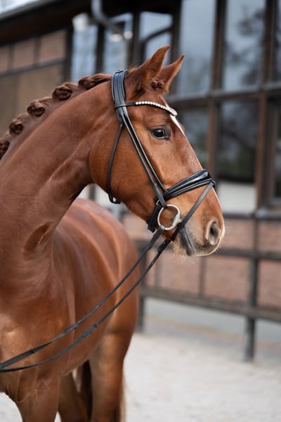 ⸻ Traumtänzer ist ein 4-jähriger Wallach von dem international sporterfolgreichen Hengst Total Hope OLD unter Isabel Freese. Seine Mutter Fiderblume stammt aus einem hoch erfolgreichen Mutterstamm. Die Großmutter Staatsprämienstute Dorina wurde 2025 als erfolgreichste Zuchtstute mit dem Hannoveraner Tafelsilber ausgezeichnet. Aus diesem Stamm gingen bereits mehrfach Teilnehmer des Bundeschampionats sowie international erfolgreiche Grand-Prix-Dressurpferde hervor. Traumtänzer überzeugt mit drei sehr guten Grundgangarten, hoher Rittigkeit sowie einem äußerst unkomplizierten und liebenswerten Charakter. Aktuell ist er noch barhuf. Ein Dressurpferd mit vielversprechender Perspektive – und einem Herz aus Gold.