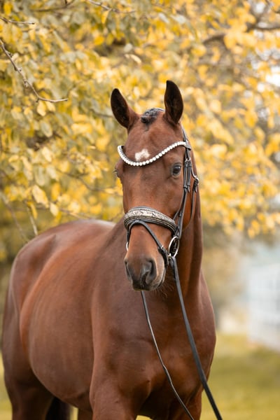 Burning Man is a very friendly, fearless, and uncomplicated dressage horse in every respect. He is a pleasure to ride, comfortable, well-balanced in the contact, and responsive to aids. Burning Man is already very mature for his age, making him suitable for less experienced riders and children with appropriate support. He is well-behaved both in the field and in the outdoor arena. He comes directly from the breeder and is being sold for personal reasons, so only to the best of homes! For inquiries, please contact via WhatsApp at: 0170/2779570