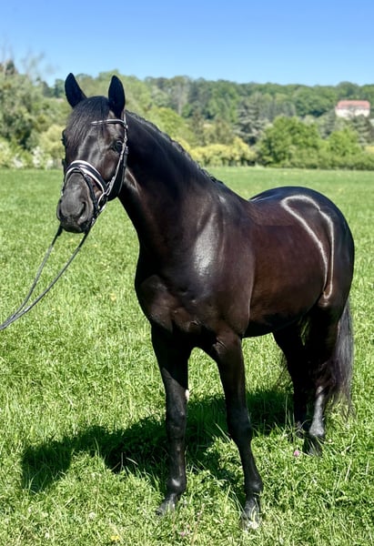 Sicher, talentiert und unglaublich reitbar – Bohemi Black ist die Art von Vierjährigem, die jeder sucht. Extrem ausgeglichen und zuverlässig – er zeigt sich jeden Tag gleich, ohne dass Aufwärmen oder Vorbereitungen notwendig sind. Einfach direkt zum Arbeiten oder Ausreiten zu nehmen. In allen Umgebungen äußerst verlässlich. Sehr amateurfreundlich. Natürlich vorwärts orientiert, ohne heiß zu sein, mit dem idealen Gleichgewicht zwischen Anhalten und Angehen. Leicht im Kontakt, reagiert fein auf die Schenkel und hält mühelos ein Rhythmus. Sehr angenehm zu sitzen, mit elastischem Trab, ausgeglichenem Galopp und korrektem Vier-Takt-Gang. Zeigt eine sehr gute natürliche Balance und lernt schnell. Schulübungen wie Seitengänge, Traversalen, einfache Wechsel am Anfang – alles unkompliziert und leicht zu reiten. Bei seinem ersten Turnier erreichte er 76 % und verhielt sich tadellos. SEHR SICHER. Kein Spook, Buckeln, Durchgehen, Aufspringen etc. Vernünftig, verzeihend und täglich leicht zu reiten. Für einen Amateur geeignet, um ihn auszubilden, aber auch qualitativ hochwertig genug für einen Profi. Ausgezeichnete Bodenmanieren. Freundlich, anhänglich und sehr menschenbezogen – ein echter „Menschenliebhaber“ im Stall. Sehr auffälliges Pferd mit starker Präsenz – zieht konstant alle Blicke auf sich. Sicher im Gelände, sowohl allein als auch in der Gruppe. Röntgenbilder vorhanden, sauber. Aktuell bei Zähnen, Impfungen und Entwurmung. Der Reiter im Video ist 180 cm groß. Bohemi Black würde eine breite Palette an Reitern passen – vom Amateur, der ein sicheres, talentiertes Youngster-Pferd für die Entwicklung sucht, bis zum Profi, der einen unkomplizierten und qualitativ hochwertigen Nachwuchs wünscht. Bohemi Black befindet sich 30 Minuten westlich von Paris, 50 Minuten vom Flughafen CDG und 40 Minuten vom Flughafen Orly entfernt. Bitte kontaktieren Sie Talia (+33 7 49 23 99 78) für weitere Informationen.