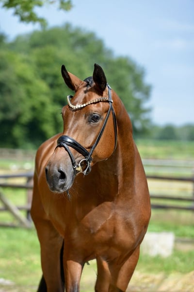 ❤️FINSBURY❤️ 🍀2021 Oldenburg gelding by Fynch Hatton-Fürst Romancier 🔛https://youtu.be/M_uQVgNnj1Y approximately 172 cm 🐴This significantly built young talent, equipped with a heart of gold, finished his first competition with top scores (3 x 8.0 for trot, canter, and perspective). A wonderful horse with great temperament, balanced, friendly, always focused on the rider, and with excellent manners, he brings joy every day. His rhythm and swing in the trot make him a standout under the saddle. An ideal candidate to grow together with and develop into a super horse for the future. 🏆Father Fynch Hatton was the Oldenburg saddle licensing winner, a price highlight with €260,000, and won the Oldenburg state championship title twice, becoming a celebrated Bundeschampion. 🥇Finsbury's maternal line is that of the Grand Prix stallion Franziskus, from which numerous successful competitors have emerged, including Bundeschampion QC Flamboyant, the Inter I successful horses Der Franz, Daymax, Francisco, Dementi/Approved, premium stallion Rock my Soul, Fridolin/Grand Prix, premium stallion Fürstbischof, and Inter II mare Die Wette. Finsbury - a super young talent with top temperament! ⚠️Current X-ray approval available 🏡Location: 49685 Emstek