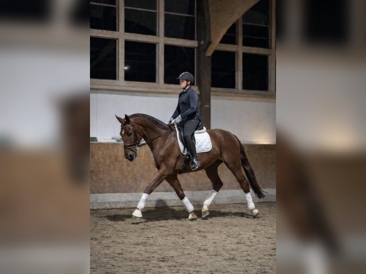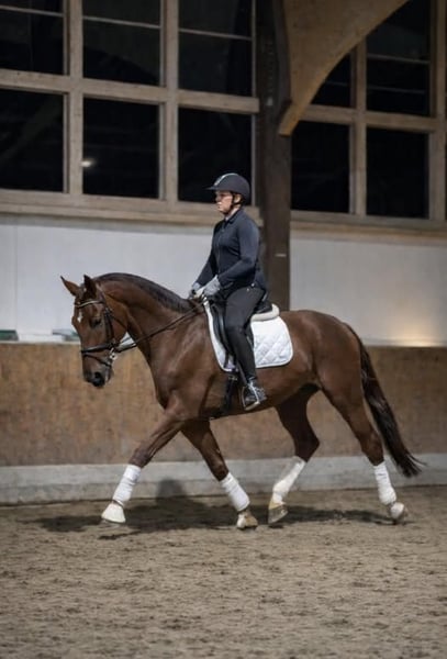 Potro de 4 años, hijo de Sir Donnerhall x De Niro x Londonderry x Brentano II, con una altura de 1.72 m, color alazán oscuro. Cuenta con un excelente informe de radiografías sin hallazgos, y en su línea materna hay múltiples caballos de Gran Premio. Lleva seis meses montado, está completamente mentalmente preparado, con una conformación muy equilibrada y buena calidad de movimiento. Ubicación cerca de Dortmund, directamente del criador.