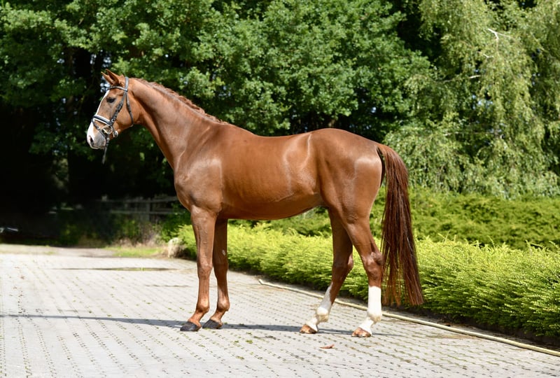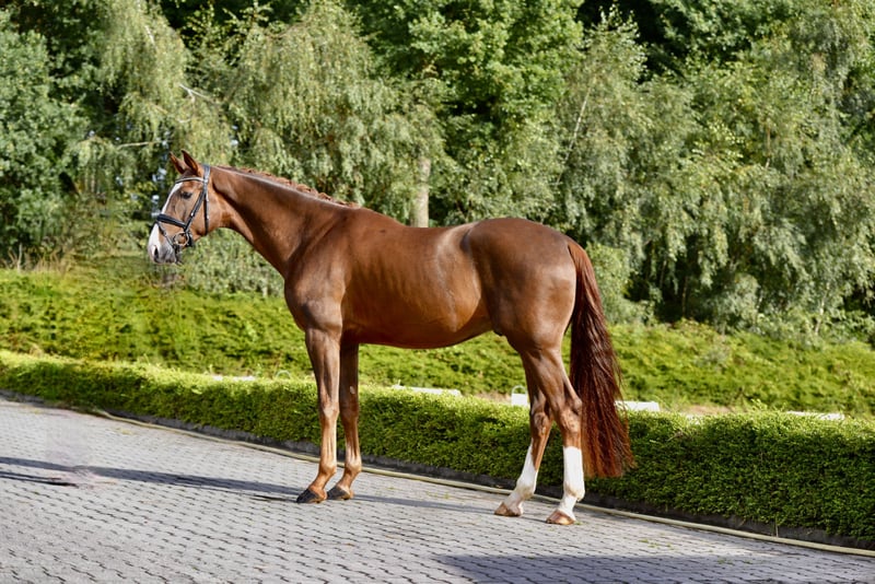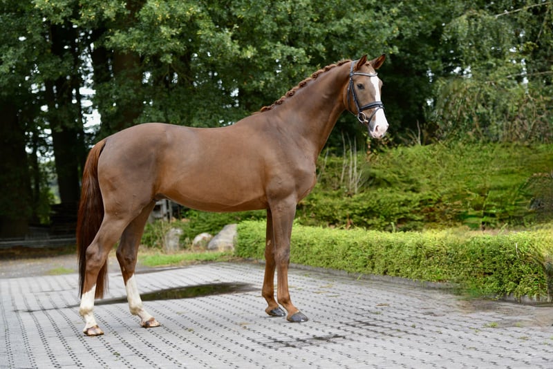 ❤️FLIPPO❤️ 🐴2021 Old gelding by Follow Him's Schönweide-Royal Diamond 🔛https://youtu.be/bJlSByptWh8 ca 172 cm 💫Dieser formschöne Goldfuchs erobert die Herzen: Immer positiv bei der Arbeit, besticht er durch seinen unerschütterlichen Takt und Schwung im Trab, eine ausdrucksstarke Galoppade und seinen sehr guten Schritt. Ein ideales Nachwuchspferd, das seinen Weg bei weiterer Ausbildung gehen wird. 🏡Direkt aus Züchterhand ist er nun seit ca einem halben Jahr in Arbeit und gibt ein sicheres Gefühl. Sehr menschenbezogen, macht Filippo jeden Tag Freude im Umgang und unter dem Sattel. 💕 🏅Vater Follow Him's Schönweide war 2017 Oldenburger Prämienhengst, erhielt in seinem 14-Tage-Test 9.0 für die Rittigkeit, stellte bereits mehrere gekörte Hengste und die Bundeschampionats-Finalistin Hildegard. Muttervater Royal Diamond war selbst im Grand Prix Sport erfolgreich und stellte zahlreiche Top-Sportler. 🎖️Filippo kommt aus einem erfolgreichen Stutenstamm, der u.a. auch die beiden eng verwandten Grand Prix Pferde Rohdiam und Revelin stellte. 🏡Standort: 49429 Visbek ⚠️Digitaler Röntgentüv vorhanden. 🐴2021 Old gelding by Follow Him's Schönweide-Royal Diamond 🔛https://youtu.be/bJlSByptWh8 💫This lovely chestnut gelding comes with three top paces, super walk, swinging rhythm in the trot work and a top character. A trainable horse to bring up the levels, directly from the breeder, he is a pleasure to have around and to train him. 🐴Filippo is around half a year under saddle and the ideal choice for any ambitious amateur. 🎖️His Sire Follow Him's Schönweide was Premium stallion of the Oldenburg license, stored 9.0 for rideability in his Performance test and already produced highly succesfull offspring. 🥇Out of Filippo's damline come two Grand Prix horses and many succesful sport horses. ⚠️xrays on file 🏡Location: 49429 Visbek