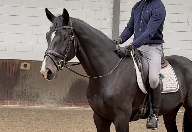 Dear prospective buyers, For questions or to arrange an appointment, please send us a WhatsApp message or an email. You can reach us on weekdays, preferably around noon. If that’s not possible, simply send a message, and we will get back to you. We look forward to hearing from you! “Theo” is a very handsome, highly personable, and quality young horse who, after only a short time under saddle, already presents himself as calm, well-ridden, and excellent in his movements. He comes directly from the breeder and hails from a very good upbringing environment. He is absolutely easy to handle and makes working together a true pleasure. Thanks to his solid basic qualities and his incredibly pleasant and positive attitude, he shows great promise as a dressage prospect. His mother is the full sister of “Quaresma,” who is currently competing successfully in the USA under junior rider Eila Fisk. An absolutely charming rough diamond with whom you can build a wonderful future together. Valid health certificate available. Directly from the breeder.