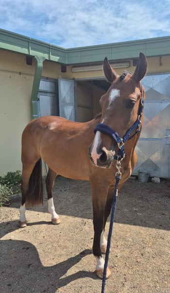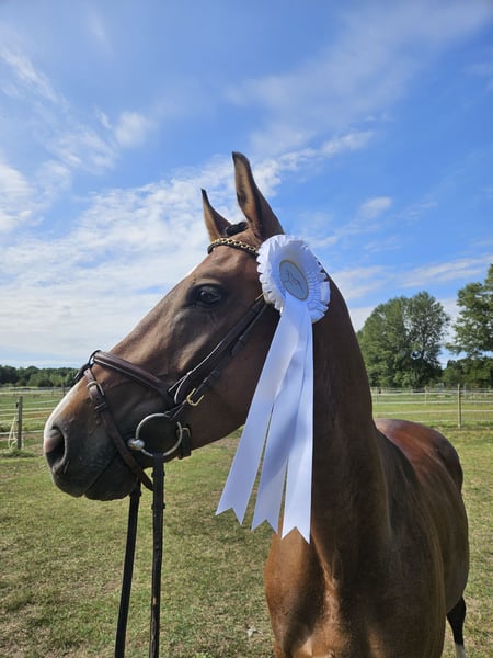 **For Sale: Stunning Oldenburg Gelding** Introducing a remarkable Oldenburg gelding, born in 2021, 162 cm. This beautiful bay horse is not only a true eye-catcher but also a talented athlete, perfect for eventing or dressage enthusiasts. With a gentle temperament and a willingness to learn, he is well-suited for riders of all levels. His movement is fluid and expressive, showcasing the potential for success. This gelding has been well cared for and is up to date on all vaccinations and farrier work. He is ready to find his forever home where he can thrive. Top vet check! Don’t miss the opportunity to own this exceptional young talent! For more information or to arrange a viewing, please contact us.