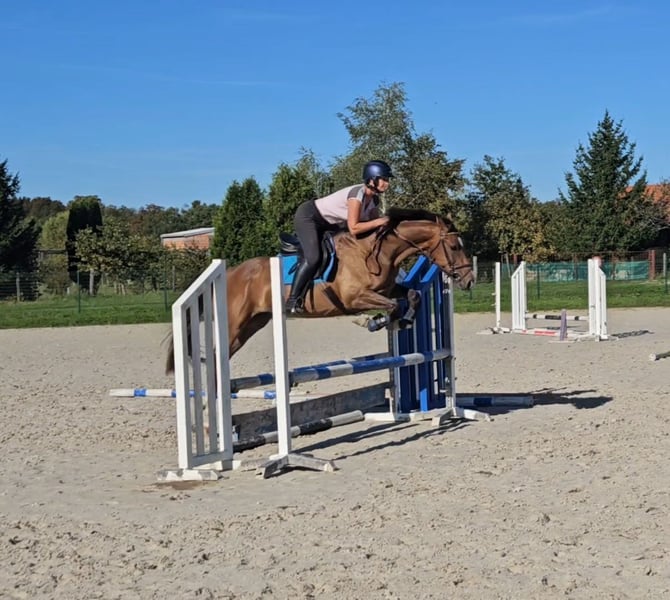 **Zum Verkauf: Wunderschöner Oldenburger Wallach** Hier präsentieren wir einen bemerkenswerten Oldenburger Wallach, geboren 2021, 1,62 m. Dieser schöne Braune ist nicht nur ein echter Blickfang, sondern auch ein talentierter Sportpartner, ideal für Vielseitigkeits- oder Dressurbegeisterte. Mit seinem sanften Temperament und seiner Lernbereitschaft ist er für Reiter aller Erfahrungsstufen bestens geeignet. Seine Bewegungen sind flüssig und ausdrucksstark, was sein Potenzial für Erfolge unterstreicht. Dieser Wallach wurde liebevoll gepflegt und ist geimpft sowie regelmäßig vom Hufschmied versorgt. Er ist bereit, sein Für-Immer-Zuhause zu finden, in dem er sich weiterentwickeln kann. Top Tierarztcheck! Verpassen Sie nicht die Gelegenheit, dieses außergewöhnliche junge Talent zu erwerben! Für weitere Informationen oder zur Terminvereinbarung für eine Besichtigung, kontaktieren Sie uns bitte.