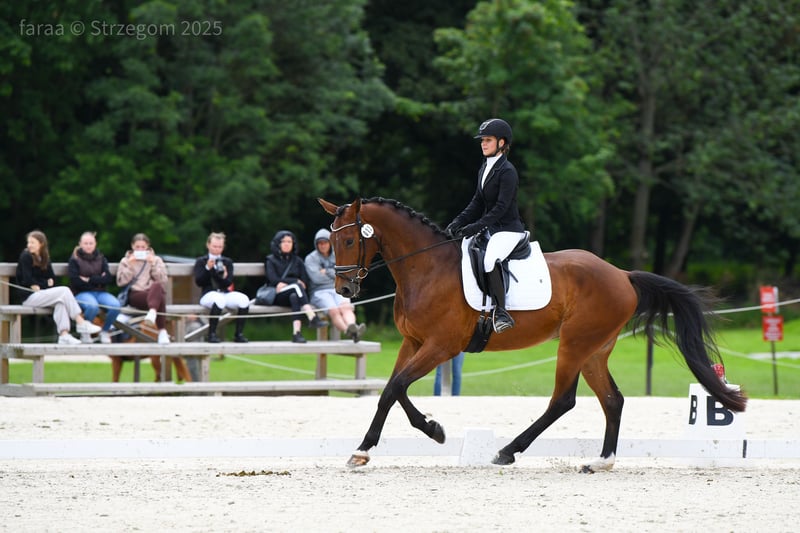 Verkaufe einen auffallenden Wallach mit doppelt herkunftsbezogenem Stammbaum. Vater: Chico's Boy, abstammend von Carpaccio Mutter: Vesper PJ, nach Vulkano Der ideale Dressurturnierhengst für höhere Klassen, äußerst beweglich, bequem im Sitz, mit einem großartigen Berggalopp, großzügigem Schritt und schnellem Fortschritt. Aufgrund seines jungen Alters nicht für Anfänger geeignet. Er startet voraussichtlich im Juni 2025 in der Klasse L – erreichte bereits den 2. Platz in der Runde, ist bereit für die Klasse P, zeigt Übergänge vom Schritt zum Galopp, Stopps, Rückwärtsrichten, Seitengänge, 15-m-Kreise und lernt sehr schnell neue Lektionen. Besitzt eine hohe Bereitschaft zu fliegenden Wechseln im Galopp. Er ist sowohl alleine als auch mit einem anderen Pferd im Gelände unterwegs gewesen. Regelmäßig geimpft, entwurmt, vorne beschlagen, in physiotherapeutischer Betreuung. Problemlos bei Behandlungen, ein lieber Kerl, sucht den Kontakt zum Menschen. Täglich im Paddock, geht in die Karussell, hat Solarium genutzt. Im Herdenverband verträglich, konfliktfrei. Hat einen sehr guten TUV, durchgeführt im Februar 2025, einsehbar. DER PREIS WIRD MIT DEM TRAININGSFORTSCHRITT DES PFERDES STEIGEN. Für weitere Informationen und Videos stehe ich gerne unter 788 101 497 (Kamila) zur Verfügung. Besichtigung in der Nähe von Wrocław möglich.