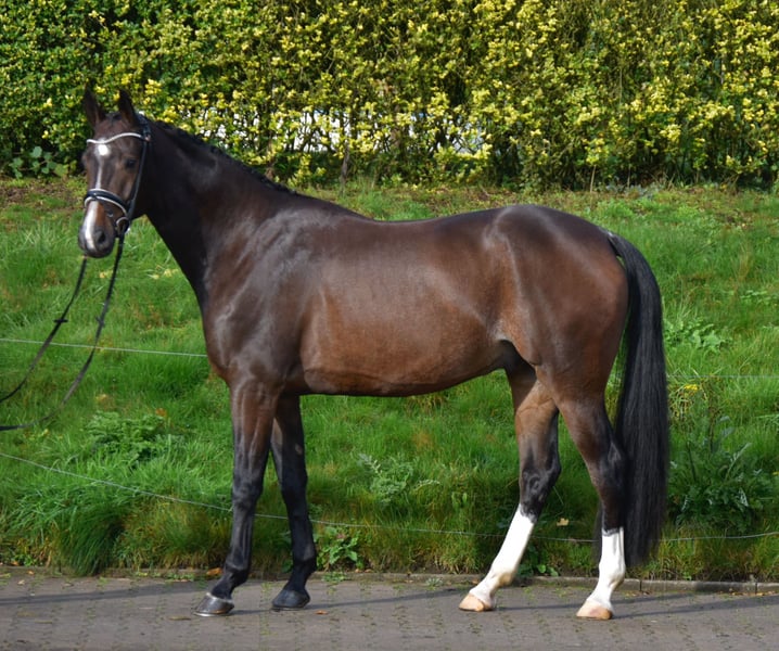 Zu Verkauf steht dieser 4-jährige, ca 173cm große Wallach von Marc Cain x Sandro Hit. In diesem Jahr schonend angeritten, steht er nun sicher an den Hilfen und bereitet mit seiner positiven Einstellung täglich Freude. Er ist im Umgang und unter dem Sattel ein artiges Pferd ohne Unarten, ist einfach zu reiten und bringt im positiven Sinne die richtige Sensibilität für den hohen Sport mit. Mit drei sehr qualitätsvollen Grundgangarten ausgestattet, immer taktsicher, mit sehr guter Hinterhandaktivität und viel Ausdruck, ist er das perfekte Nachwuchspferd fürs Dressurviereck. Gute Röntgenbilder liegen vor ‼️Bei Interesse und für Videos bitte ausschließlich telefonisch oder über WhatsApp unter 017621729218 melden. Anfragen über ebay oder ehorses werden nicht beantwortet.‼️ Das Pferd wird nicht zur Verfügung gestellt und kann auch nicht auf Raten gezahlt werden.