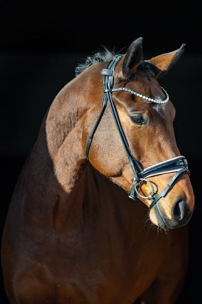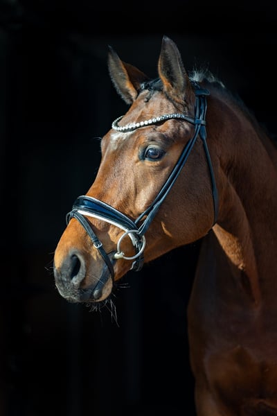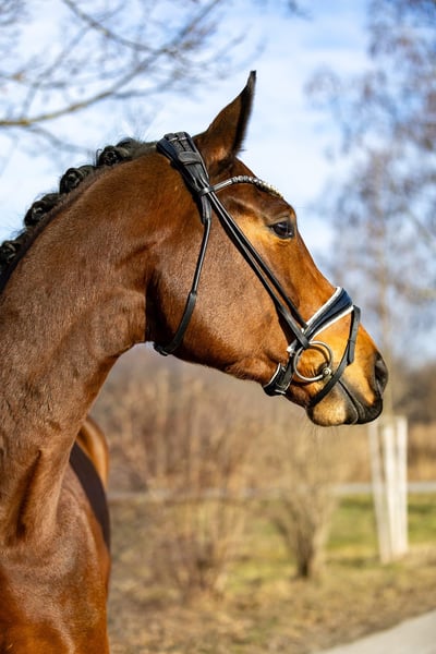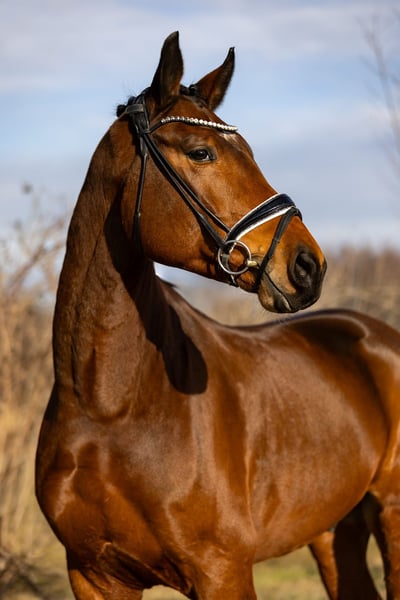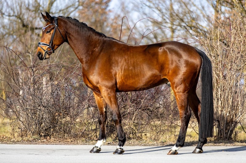 Verkaufsanzeige für den braunen Wallach FINSBURY (5 Jahre) FINSBURY ist ein außergewöhnlich schicker, brauner Wallach von fünf Jahren mit drei hervorragenden Grundgangarten und viel Qualität für den Dressursport. Trotz seines jungen Alters ist er ein absolutes Verlasspferd. Er überzeugt mit einem sehr guten Charakter – sowohl unter dem Sattel als auch im täglichen Umgang. FINSBURY ist ausgesprochen menschenbezogen, lieb und zuverlässig. Er genießt es, geputzt zu werden, zeigt sich beim Longieren und Freilaufen stets kooperativ und kommt in der Halle von selbst zu seinem Menschen. Dank seiner Größe und der bereits sehr stabilen Rückenmuskulatur ist FINSBURY sowohl für schwächere Reiter, die noch am Anfang ihrer Ausbildung stehen, als auch für schwerere Reiter bestens geeignet. Seine unkomplizierte und fröhliche Art macht ihn zu einem echten Lieblingspferd. FINSBURY hat jeden Tag gute Laune, macht alles brav mit und bietet aufgrund seines Charakters und seiner Qualität einen großen Einsatzbereich für viele Reiter. Standort des Pferdes: Rosenheim