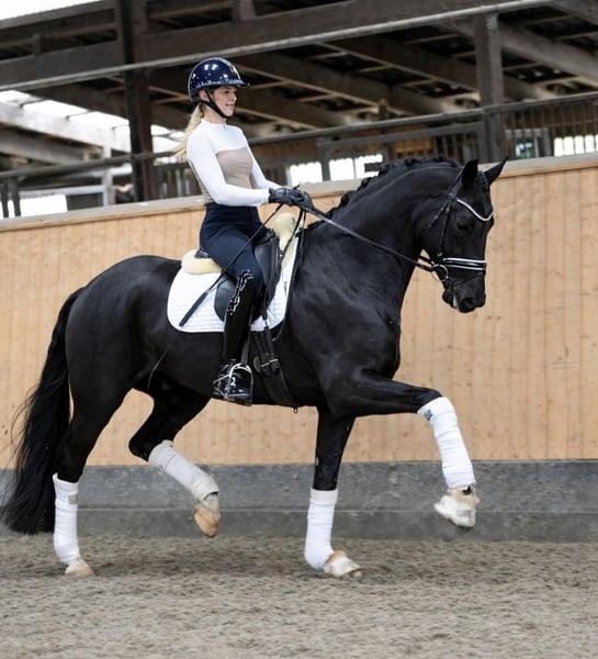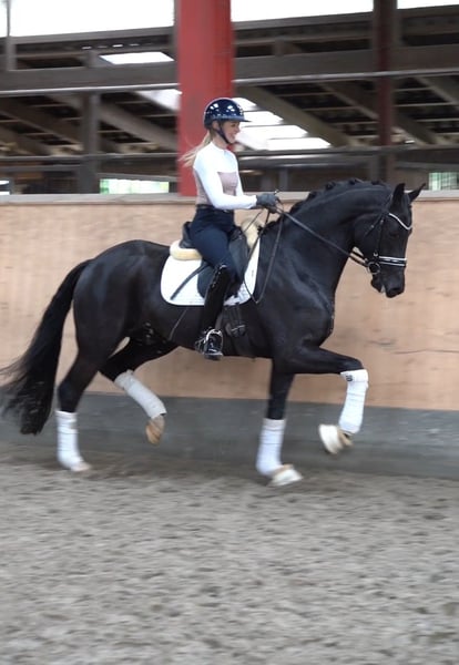Te koop staat de karaktervolle en indrukwekkende ruin Riovaldi. Begin 2024 werd hij voorgesteld tijdens de Oldenburg-keuring in Vechta en kreeg daar een positief keuringsrapport. Vervolgens werd hij op driejarige leeftijd gecastreerd en geniet sindsdien van een fantastisch leven als rijpaard. Riovaldi overtuigt met drie uitstekende basisgangen, een prachtig uiterlijk in een donkere coat en veel kwaliteit onder het zadel. Momenteel wordt hij voorzichtig voorbereid op L-niveau dressuurproeven, zoals buitenwaarts galopperen, galop-voetswisselingen, stap-galop-overgangen en korte volte-aanzetten, die al veilig aangelegd zijn. Daarnaast toont hij opmerkelijk talent voor piaffe en passage en brengt zijn ruiter dagelijks grote vreugde. In de omgang is hij gemakkelijk, vriendelijk en nervensterk, zowel in de dagelijkse handling als in de kudde. Ook van moederskant is hij zeer interessant gefokt: Zijn moeder Venecia OLD was vice-Bundeschampioness en behaalde successen tot Inter I-niveau. Geen e-mailvragen, graag alleen telefonisch contact. Gaven zonder garantie. Prijs exclusief BTW.