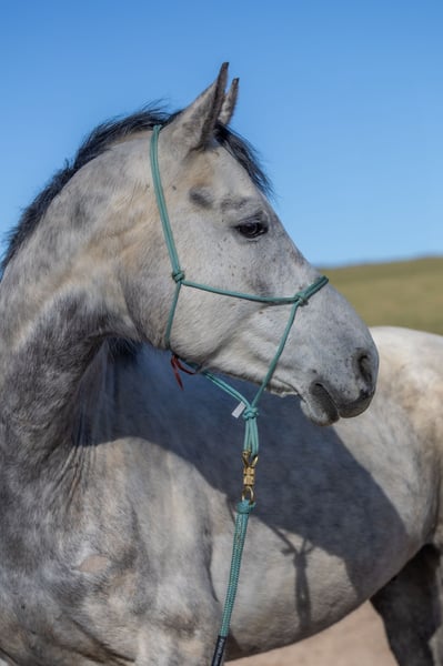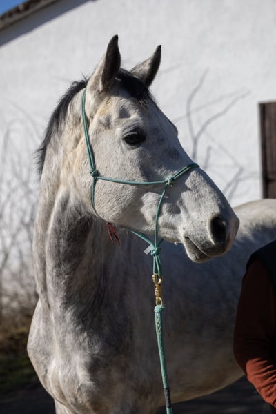 Bentador was taken over by us in January 2025 from the Oldenburg breeders Antje and Konstantin Stahl. He had previously been in dressage training for several months. He is a sweet, athletic boy with an incredibly quick understanding and beautiful movements. With us, Benny loads into the trailer without any issues, picks up his hooves willingly, is familiar with hoof boots, and can stand tied for longer periods. However, we are always cautious with terms like "blacksmith and loading friendly," as this often depends on the individual horse's relationship with the person handling them. In the field, Benny is brave, motivated, and curious. In the riding arena, he offers an incredible amount on the ground – jumping, flying changes, lateral movements, and transitions are a breeze for him when the person at the other end of the rope is friendly and fair and can manage their own energy well. Even under saddle, he shows his great potential in all three gaits – when the relationship with his human is right and they can provide him with security and relaxation. Bentador is the perfect horse for an ambitious rider with good horsemanship skills who is eager to develop further with him both on the ground and while riding. He closely bonds with his person, valuing relationship, reliability, and trust, but he also appreciates play, creativity, and humor with his human. In our herd, he is very self-confident and enjoys being able to socialize after years as a stallion (until October 2024). Bentador will be placed in the hands of someone experienced in horsemanship and will only be sold for open stable and herd living. If you are interested in Benny, we hope you will take the time to get to know him calmly with us. Included in the price is a voucher for participation in two camps with us (dates can be found on our website www.birkenhof-heil.de).