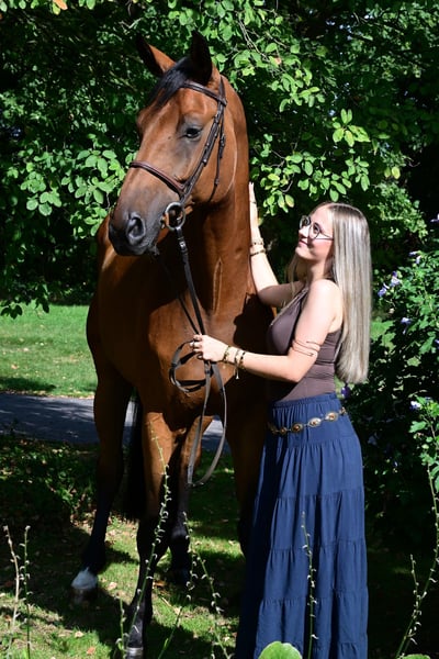 Unser Alegro bringt genau das mit, wovon man als Reiter träumt. Er besitzt ein feines Wesen, einen 1 A Charakter und ist total liebenswert. Er hat drei gute Grundgangarten, steht fein und angenehm an den Hilfen und geht beinah von selbst durchs Genick am Zügel. Alegro ist allzeit bereit: Egal ob Dressur oder Springen, Zuhause, Turnier oder im Gelände- er ist ein treuer Begleiter in jeder Situation. Schmiede- und verladefromm. Er wird nur in ein 5*Sterne-Zuhause abgeben. Aufgrund von Befund nicht für den gehobenen Springsport (M-Springen) geeignet. Preis 10. 🥕🥕🥕