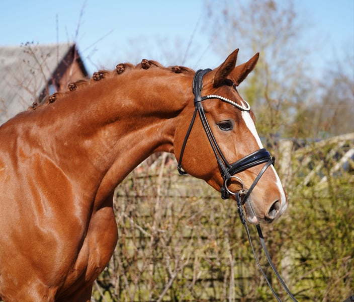 Zum Verkauf steht dieser typvolle Sohn des Borsalino. Bernstein verfügt über drei sehr gute Grundgangarten und ist imposante Erscheinung unter dem Sattel. Er ist mehrfach platziert in Dressurpferdeprüfungen der Klassen A und L. Derzeit befindet er sich in der Ausbildung auf Dressurpferde M-Niveau, wobei einzelne Lektionen der schweren Klasse bereits begonnen wurden. Im Umgang sowie in der Herde zeigt er sich bei uns unkompliziert. Keine Mails, nur Anrufe Preis zzgl MwSt Angaben ohne Gewähr