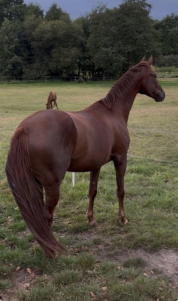 Cœur lourdement, je cherche pour mon hongre Oldenburger (né en 2017) un nouveau foyer aimant. C’est un cheval très spécial – incroyablement gentil, très proche de l’humain et simplement un compagnon qui met un sourire sur votre visage chaque jour. Il apprécie beaucoup la proximité avec les personnes et se montre toujours amical, calme et sincère au quotidien. Il est également sage et fiable en présence d’enfants. Il a été monté en selle et a toujours coopéré avec volonté. Malheureusement, il présente des irrégularités de rythme lors du trot, dont la cause n’a pas encore été clairement identifiée. Avec patience, temps et un renforcement musculaire continu, cela peut s’améliorer. En raison du mauvais temps et de l’absence d’une carrière, il n’a été que depuis environ six mois qu’il pâture en paddock. Il n’est donc pas actuellement en entraînement. Cependant, s’il est doucement remis en selle et qu’on lui donne le temps nécessaire, il montre rapidement tout l’amour et la fiabilité qu’il possède. En manipulation quotidienne, il est vraiment facile : • Il se montre parfaitement calme chez le maréchal-ferrant • Le chargement en van est encore difficile pour lui – il faut ici des personnes calmes et patientes qui lui donnent confiance Je souhaite de tout cœur pour lui un foyer paisible, auprès de personnes compréhensives et patientes, qui ne veulent pas « faire fonctionner » le cheval, mais l’acceptent tel qu’il est. Il a tant d’amour à donner et mérite de trouver sa place. Je le vois comme : • un compagnon de loisirs fidèle • ou un partenaire affectueux Prix : 1 900 € Visites possibles sur rendez-vous