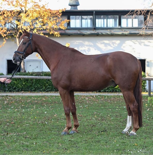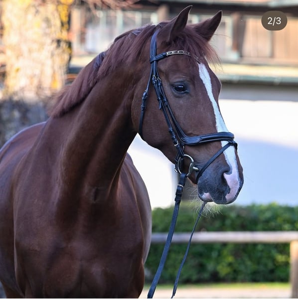This smart chestnut gelding is a horse for higher demands. He has already won medium (M) level dressage tests. Imperio needs some time and needs to gain confidence in his rider, then he will show himself to be highly motivated with lots of ambition and quality in the dressage arena. Easy to blacksmith and load. Get to know Imperio and come to the Riemer Pferdemontag on March 31, 2025 at the Olympia-Reitanlage in Munich Riem (Landshamerstr. 11, 81929 Munich). The horses for sale will be presented from 6 p.m. and can be ridden afterwards. Food and drink will be available on site.