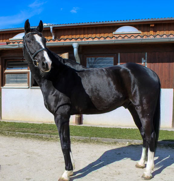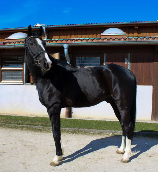 We have accompanied Zorro, a jet-black gelding (Zalando x Sir Alfred), on his way with a lot of care and love and are now looking for a home where he can continue to be supported. About Zorro Zorro came to us in a condition that did not do justice to his quality and potential. With patience, correct feeding and careful training, we have given him time to regenerate and regain his strength. He is now happy, balanced and full of expression, but we attach great importance to continuing to build him up calmly and according to classical principles. He is currently undergoing basic corrective training according to the classical guidelines of H. d. V. 12. We have only sat on him gently a few times to give him a fair and sustainable training. He is attentive, willing to learn and sensitive, with a natural balance and impressive collection ability. Pedigree - rideability meets character His sire Zalando impresses with modern elegance, dynamism and an inheritance of rideability and willingness to work. The dam line, influenced by Sir Alfred, brings toughness, willingness to perform and collection ability - qualities that are already clearly evident in Zorro's disposition. Character and interior Zorro is a lovable, cuddly gelding who is looking for his human. He is sensitive and attentive, always eager to please. His fine nature makes him a partner for riders who work sensitively and with a steady hand. Who is Zorro suitable for? He is the ideal horse for an experienced, patient rider who values correct, fine training and continues to build him up calmly. If you give him time, you will be rewarded with a loyal, talented partner who has the potential for dressage and fine classical work. If you are looking for a special horse who wants to be carefully nurtured, we look forward to meeting you! Further information, videos and viewing appointments are available on request.