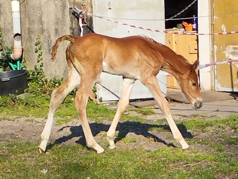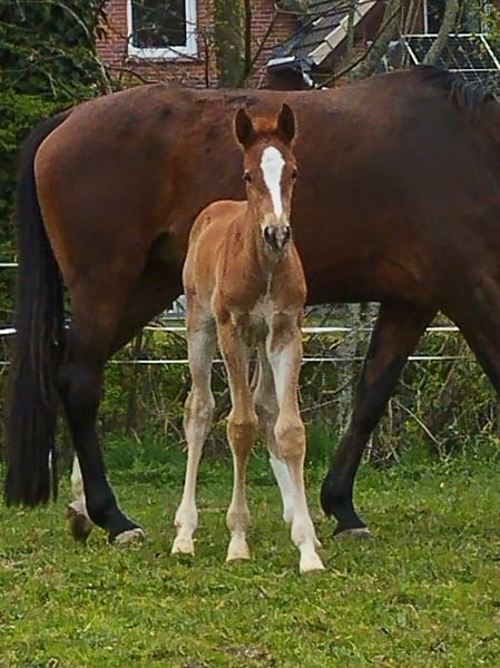 Capper is a lively foal with a lot of charm and zest for life. He is elegant and long-legged with a correct foundation. He is developing promisingly and is people-oriented; he is already familiar with the halter. His father, Cador, won show jumping competitions at a young age with dream scores of up to 9.0. He qualified multiple times for the Bundeschampionat of show jumpers. Cador was successful in high-level show jumping - both nationally and internationally. In 2015, he was awarded Oldenburg Stallion of the Year (VTV Stallion). Ten years later, in 2025, he received the highest honor from the Oldenburg Association and was crowned Oldenburg Elite Stallion. Cador's father, Catoki, was highly successful in international show jumping, winning World Cup competitions with Philipp Weishaupt. He also produced numerous 5*-horses, such as the former championship horse of Laura Klaphake, Catch me if you can, with which she won team bronze at the World Equestrian Games in 2018 in Tryon. Cador's mother, St.Pr. and Elite Mare Lady Heida II by Landor S, received a jumping score of 10.0 in the mare performance test and is a full sister to the Bundessieger mare St.Pr. and Elite Mare Lady Heida I. From this mare line of Heida come many licensed stallions, such as Coulthard, Diamant de Landor, Diamant de Plaisir I and II, Calandor, Incello, Lagoheidor G, Lambrusco Ask, Landor S, Landwerder, or Omnistar (Source: https://sosath.com). Information about the dam line: Capper's young mother, Peppita, is a daughter of the elite stallion Sergeant Pepper I. He was reserve champion at the licensing, HLP winner, Oldenburg main premium winner, 2x state champion, and was a finalist 3 times at the Bundeschampionat (third as a 4-year-old). He was highly successful with over 24 S-class victories in Germany and abroad, including in Madrid and London, and served as a reserve horse at the Olympic Games in Athens. Peppita's maternal grandfather, Contendro I, is a record-breaking and living legend, as he is the only stallion ever to be simultaneously highly ranked in the lists of show jumping, dressage, and eventing sires due to his successful offspring. For 9 years, he has been among the TOP-30 of the world's most successful show jumping sires and consistently at the top in eventing. Mother Peppita descends from the mare line of Pierouschka, which has been maintained by the Ovelhey family in a breeding tradition spanning over 100 years. The Ovelhey breeding program is filled with national and international sporting successes, licensed stallions, and countless breeding show successes.