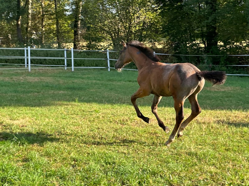 Prämiertes Hengstfohlen von Comme Prévu x Foncetti van de Heffinck x Clinton mit herausragenden Bewegungen, überaus korrektem Fundament und kraftvoller Hinterhandaktion, die Vorfreude auf die zukünftige Springkarriere macht. Dieser Hengstanwärter mit olympischem Pedigree präsentiert sich edel, langbeinig, modern und mit besonderer Typausprägung. Sein wacher, aufgeschlossener Charakter bereitet täglich Freude. Seit dem ersten Tag in der Hand beherrscht Comme en bert das Fohlen-ABC, kennt alltägliche Hofgeräusche und den Hufschmied. Dieses qualitätsvolle Hengstfohlen ist eine Offerte für Zucht und Sport und wird gerne in fördernde Hände gegeben. Bei ernsthaftem Interesse gerne per DM kontaktieren. Pedigree: Die Zangersheider Mutter Florien van den Bosrand Z lief 2-jährig über die Auktion in Belgien (Video s. https://youtu.be/4kqM1Q-jLlU?si=btH1qt1EEr0zzOhC) und brachte bereits ein überaus korrektes, typvolles Stutfohlen, das ebenfalls die Fohlenprämie erhielt und 2024 Sieger des Fohlenchampionats wurde. Die Mutter zeigte sich beim Anreiten überaus leistungsbereit, ehrgeizig und rittig. Da die folgende Fohlenpause so positiv geglückt ist, durfte sie noch ein weiteres Fohlen bringen. Ihr Halbbruder aus der selben Mutter ist kein geringerer als Giljandro van den Bosrand, der sowohl unter Henrik von Eckermann und René Tebbel als auch unter der Amazone Anna Kellnerová unzählige internationale Erfolge auf Fünf-Sterne-Niveau sammelte und bewiesen hat, dass er nicht nur ein hochzuverlässiger Partner für erfahrene Parcoursprofis, sondern auch für aufstrebende Amazonen in den schwersten Parcours der Welt ist. Muttervater Foncetti vd Heffinck hat ebenfalls zahlreiche Siege und Platzierungen auf internationalem Fünf-Sterne-Niveau errungen und krönte seine Karriere mit der Teilnahme an den Olympischen Spielen in Paris 2024. Seinen Nachkommen vererbt er die gewaltige Sprungtechnik, Rittigkeit und ansprechende Bewegungen. Nicht zu verleugnen ist, dass MMV Clinton, selbst Olympiateilnehmer und Nationenpreissieger, der bis heute als Phänomen im Spitzenspringsport und einer der echten Hauptbeschäler gilt, seine schöne Aufmachung, das intelligente Auge und das wohl proportionierte Exterieur bis in die Generation dieses Hengstfohlens weitergegeben hat. Mutter und Halbschwester des Hengstfohlens können besichtigt werden. Vater Comme Prévu ist Hauptprämiensieger und international erfolgreich in Klasse S. Schick, kopfklar und unkompliziert vererbt er vor allem Typ und Sportlichkeit und hat bereits mehrere gekörte Söhne. Sein Vater Comme il faut ist Sieger in Weltcupspringen. Dessen Vater, Cornet Obolensky, gewann große Preise und Nationenpreise und ist einer der erfolgreichsten Vererber der Gegenwart. Mutter von Comme il faut ist die Ikone Ratina Z, Erfolgspferd von Ludger Beerbaum und Mannschaftsolympiasieger, Mannschaftsweltmeister, Doppeleuropameister und Weltcupsieger. Dieses Hengstfohlen vereint leistungs- als auch zuchterprobtes Pedigree der Extraklasse.