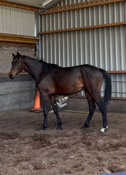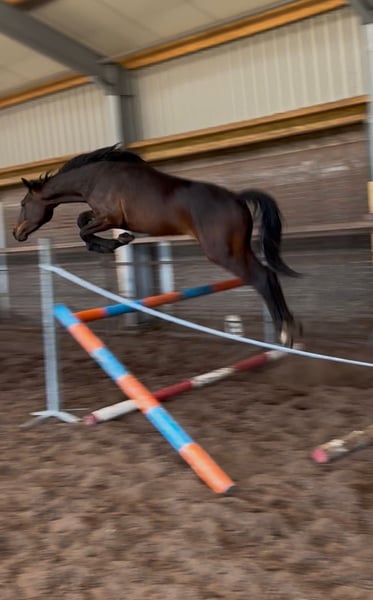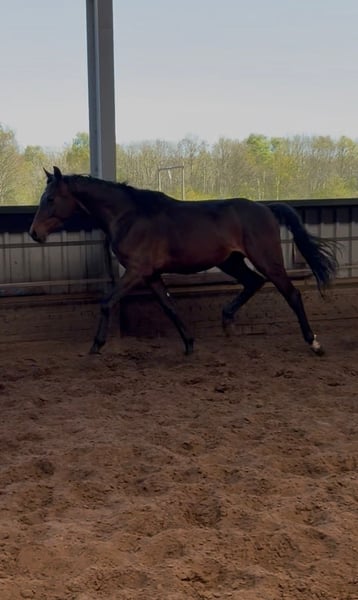Zum Verkauf steht ein äußerst vielversprechender 2-jähriger Nachwuchskracher mit bester Perspektive für den Sport. Der junge Hengst präsentiert sich in dunkelbrauner Jacke und misst aktuell ca. 1,61 m. Er befindet sich noch voll im Wachstum, das zu erwartende Endmaß liegt bei etwa 1,73 m. Besonders hervorzuheben ist sein harmonischer, korrekt gebauter Körper sowie seine insgesamt sehr ansprechende Erscheinung. Für ein Springpferd fällt neben seinem raumgreifenden Galopp vor allem sein extrem gutes Hinterbein auf, was in einem sehr guten Trab resultiert. Abstammungs- und Leistungspotenzial sprechen klar für ihn: Seine Mutter sowie sein Vollbruder befinden sich ebenfalls in meinem Besitz und können vor Ort besichtigt werden. Der Vollbruder ist bereits erfolgreich im Springsport unterwegs (aktuell auf 1,25 m Niveau) und zeigt deutliches Potenzial für höhere Aufgaben. Sein Vollbruder ist eine absolute Kopie von diesem Hengst. Der Junghengst bringt beste Voraussetzungen für eine erfolgreiche Zukunft im Sport mit und eignet sich für ambitionierte Reiter oder zur weiteren Ausbildung. Absolut kein Notverkauf und geht nur in allerbeste, fördernde Hände. Keine Händler. Das Video zeigt ihn bei seinem allerersten Mal Freispringen und spricht für sich. Bei Interesse oder für weitere Informationen freue ich mich über eine Nachricht.