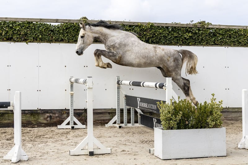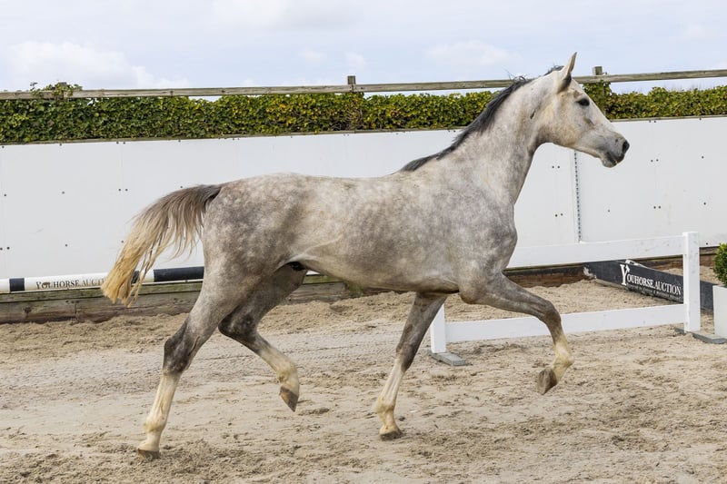 Schöner Schimmel mit viel Blut. Sehr gut im Trab und leichtfüßig in der Bewegung. Vorsichtig beim Sprung und schnell vom Boden abhebend. Ein Pferd mit Qualität und Einstellung, geeignet für mehrere Disziplinen. Vater Cosmos BH – 1,60 m Zugelassener Hengst, springt 1,60 m. Vererbt Kraft und Einstellung. Mutter Chacanna Star PS (v. Chacfly PS, 1,45 m) Springt auf 1,10 m Niveau. Mutterlinie / Stammbaum Großmutter Doxanna (v. Quick Star, 1,60 m) Aus der Mutterlinie: – Droxello – 1,35 m – Centanna – 1,60 m – Crazy in Love – 1,20 m – Crazy Quick – 1,60 m – Kylix Blue Star – 1,50 m – Capua – 1,50 m – Chacote – 1,60 m – La India Contaxanna – 1,45 m – C Stara Quick PS – 1,40 m Weiter in der Linie: – Huracan RC – 1,55 m – Chacadoxena PS – 1,50 m – Ziggy – 1,55 m – I.Z. Castello d’Oro – 1,60 m – Lasangos – 1,50 m Zugelassene Hengste in der Linie: Cosmos BH, Chellano Alpha Z, Contender, Artos Z, Chacfly PS, Chacco-Blue, Quick Star, Latus I Sehr leistungsstarker internationaler Stamm mit starken Erfolgen.