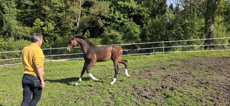 Ausdrucksstarkes Hengstfohlen von Chardonnay aus einer großrahmigen Stute ( 1,76 m ), S** mehrfach platziert. Das Fohlen hat einen ausgesprochenen guten Charakter, ist sehr Menschen bezogen und neugierig. Er wurde regelmäßig entwurmt, war beim Hufschmied und kennt das Fohlen ABC. Eine Besichtigung ist nach Absprache möglich.