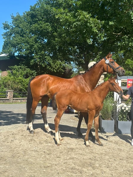 Captain Jack ist ein prämiertes, typvolles und ausdrucksstarkes Hengstfohlen. Er verfügt über ein korrektes Fundament, eine betonte Oberhalslinie und einen raumgreifenden Bewegungsablauf mit viel Schwung. Sein Auftreten ist durchweg kraftvoll und dynamisch – Captain Jack ist menschenbezogenen, neugierig und unerschrocken. Wir wünschen uns für ihn ein förderndes Zuhause, in dem seine Qualitäten erkannt und weiterentwickelt werden. Bei Interesse freuen wir uns über eine persönliche Kontaktaufnahme. Angaben zum Mutterstamm: Die Mutter Cieryana hat 2014 die Staatsprämie erhalten und war Siegerin im Freispringchampionat in Vechta. https://youtu.be/lW0nMhV4heg?si=uJX7kjAwehbLwc_v