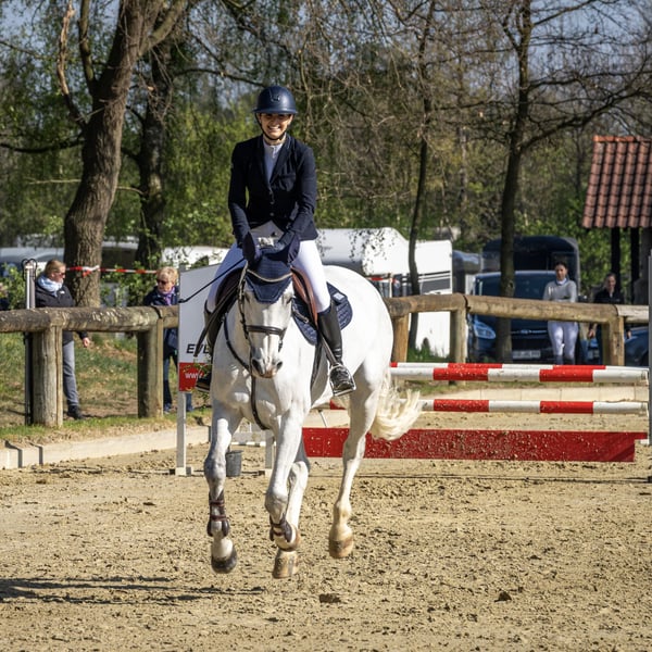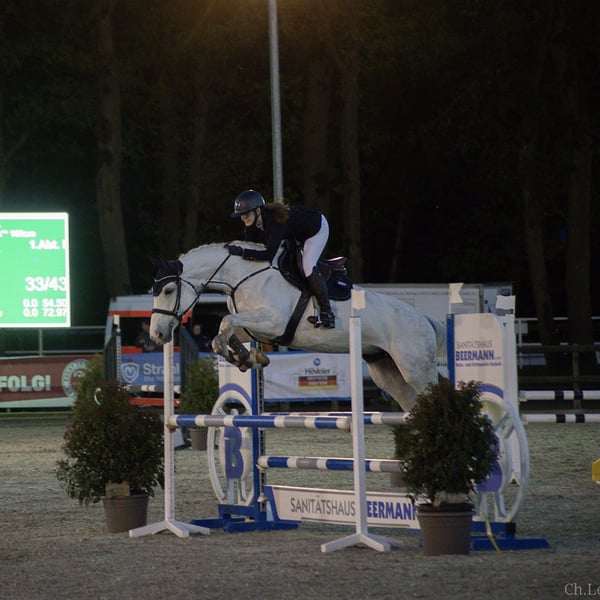 Zum Verkauf steht eine 2015 geborene Oldenburger Springstute mit einer erstklassigen Abstammung von Colestus x Contender. Die Stute besticht nicht nur durch ihre sportliche Qualität, sondern vor allem durch ihren unfassbar lieben Charakter. Sie wurde solide bis zur Klasse M ausgebildet und hat Platzierungen bis Springpferde M erreicht. In den letzten Jahren wurde sie von einem Amateur-Mädchen in der Klasse A vorgestellt, weshalb sie sich ideal als Umsteigerpferd oder für junge Nachwuchsreiter eignet. Sie ist der perfekte Partner für ambitionierte Reiter, die in den Turniersport einsteigen und gemeinsam mit ihr sportlich hoch hinaus wollen. Neben ihren sportlichen Qualitäten besticht diese Stute vor allem durch ihr unfassbar liebes Wesen und ihre nervenstarke Art. Sie ist im täglichen Umgang absolut unkompliziert, zeigt sich beim Schmied vorbildlich und lässt sich vollkommen stressfrei sowohl auf den Anhänger als auch auf den LKW verladen. Auch im Gelände ist sie eine echte Lebensversicherung: Egal ob in der Gruppe oder alleine, sie ist jederzeit regulierbar und zeigt sich von Alltagssituationen oder dem Stallalltag völlig unbeeindruckt. Unarten wie Buckeln oder Durchgehen kennt sie überhaupt nicht. Wie verlässlich sie ist, bewies sie erst im vergangenen Mai, als sie einen 10-jährigen Jungen vertrauensvoll auf sein allererstes Turnier begleitete und mit ihm souverän einen Reiter-Wettbewerb absolvierte. Sie ist ein herzlicher Partner für alle Lebenslagen, mit dem man einfach direkt losreiten und sich sicher fühlen kann. Eine ehrliche Stute mit Herz, die nun einen motivierten Reiter sucht, der mit ihr zusammen ein vertrauensvolles Team bildet.