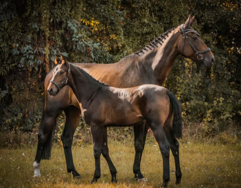 For sale is a 10-year-old Oldenburg show jumping mare with an approximate height of 17.8 hh. She is trained up to class L in jumping but is only conditionally rideable and not suitable for beginners. The mare is sensitive and requires a calm, consistent, and experienced handler. Due to her pedigree, size, and presence, she is very well suited as a broodmare. She has already produced two healthy foals. In daily handling, she is easy to load and farrier-friendly. She loves being worked from the ground. Sale only to responsible owners.