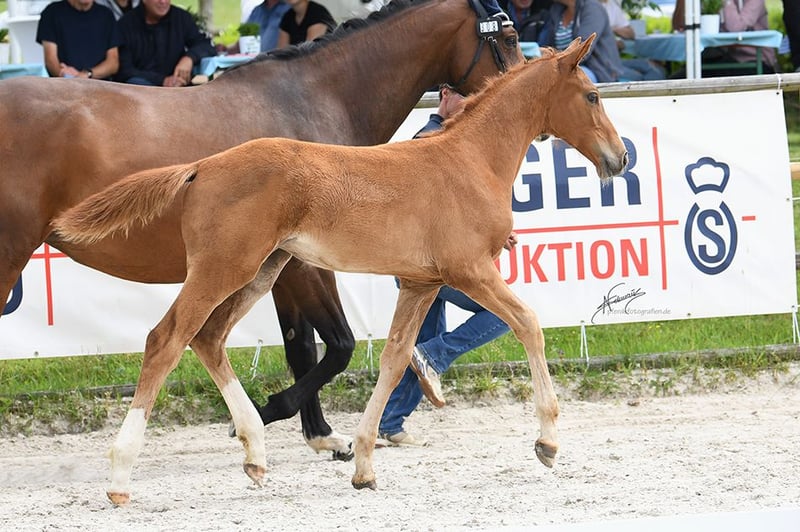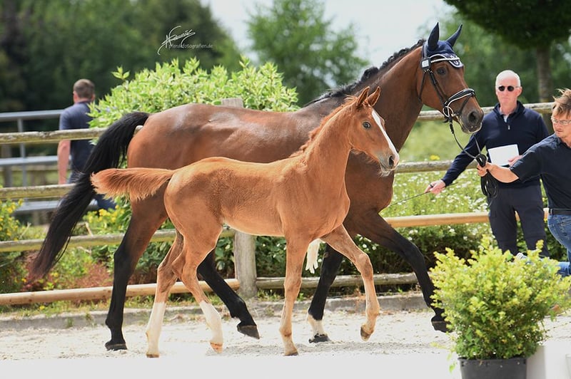 In vendita c'è una promettente cavalla Oldenburger, nata il 24.03.2025. Questa elegante cavalla baia si distingue per la sua eccellente conformazione fisica e il suo fascino accattivante. È particolarmente adatta per il salto ostacoli e colpisce per il suo carattere coraggioso e la sua alta disponibilità all'apprendimento. Con una solida formazione di base e molto potenziale per il futuro, è la partner ideale per cavalieri e cavaliere ambiziosi. È buona nel maneggio, tranquilla in stalla e ha un carattere amichevole e equilibrato. Per ulteriori informazioni o per manifestare il vostro interesse, sono a vostra disposizione. Venite a trovarci e convincetevi voi stessi di questa straordinaria cavalla!