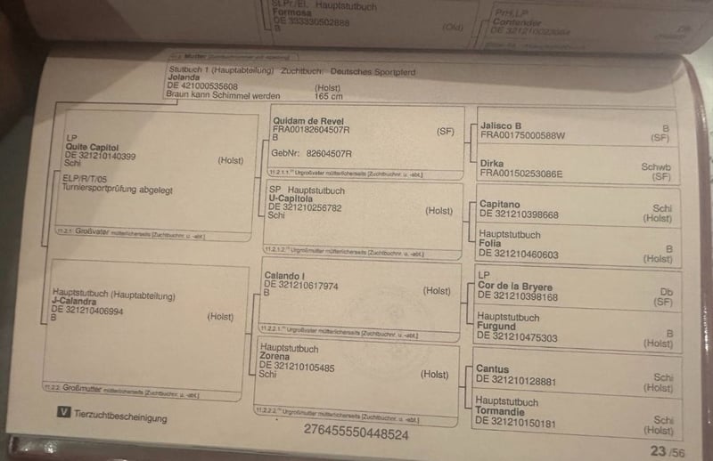 Zum Verkauf steht eine wunderschöne Jährlingsstute mit 1A Genen. Die Stute hat einen Klasse Stammbaum, dadurch ist es sehr wahrscheinlich das sie zu einem spitzen Springpferd ausgebildet werden kann. Auch für Zuchtzwecke wäre sie eine optimale Wahl. Name: Justitzia (Frieda) Farbe: Schimmel Geschlecht: Stute Geboren am: 01.05.2024 Stockmaß: 1,55m (derzeit) Abstammung: siehe Bilder - in Deutschland geboren und aufgewachsen - Jung und lernfähig - ideal zum selbst ausbilden - Freundliches, offenes Wesen - leicht im Umgang - Gesund, kräftig und bereits gut entwickelt - Hochwertige Abstammung - viel Potenzial - Bereits im jungen Alter gut im Umgang Aufgepasst: Ein Pferd ist kein Spielzeug! Seien Sie sich bitte bewusst, das solch ein Tier viel Zeit und Arbeit in Anspruch nimmt. Eine Rückgabe ist nicht möglich. Vergewissern Sie sich bitte VOR dem Kauf, ob Sie der Sache gewachsen sind. Bei Fragen stehe ich Ihnen gern zur Verfügung. Bitte kontaktieren Sie mich nur bei tatsächlicher Kaufabsicht. Vielen Dank!