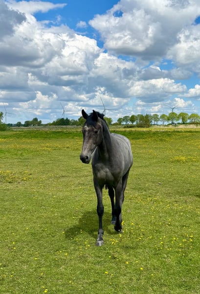 Te koop aangeboden: een merrie geboren in 2023 uit familiebezit. De merrie is een nakomeling van Dorian Grey, een Dominator Z-afstammeling die vooral opvalt door haar lichtvoetigheid en techniek. De video toont de merrie tijdens haar eerste vrije sprong, nadat ze enkele dagen geleden opgestald is. Huidige röntgenfoto’s beschikbaar, zonder afwijkingen. Voor verdere vragen neem gerust telefonisch contact op via: 0160-96436624.