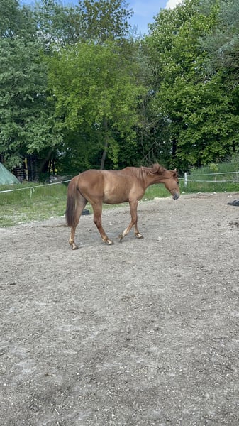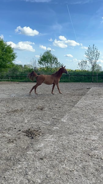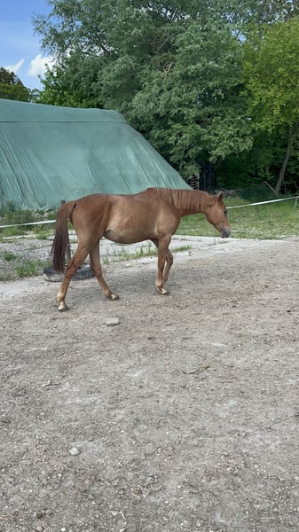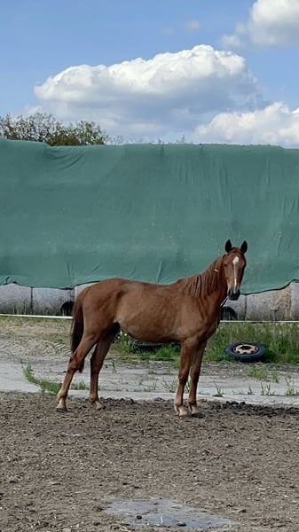 Prämiertes elegantes dreijähriges Stutfohlen mit hervorragendem Pedigree sowohl von Seiten der Mutter Symphonie (Abstammung von Damenstolz) als auch vom bekannten Vater Avalon (ein Sohn des Weltmeistermachers Askari). Der Hengst Avalon gilt als ein sehr guter Vererber seiner großartigen Qualitäten, die auch zu hohen Preisgelder führten. Das Fohlen überzeugt durch seine ausgreifenden Gänge und guten Proportionen. So ist es auf der Fohlenschau des Oldenburger Pferdzuchtverbandes prämiert worden.