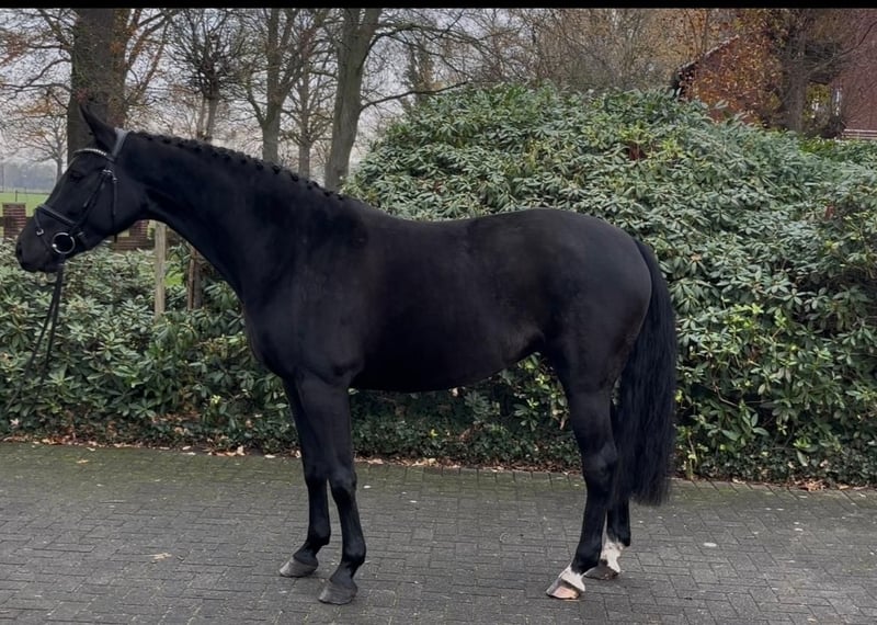 For sale is this stunning mare by Vagabond, directly from the breeder. Four years old 16.1 hh Her training level is good; she has been ridden for approximately three months and has recently completed her first small jumps. She has a sweet temperament and is very people-oriented. Genetically, she is a direct maternal half-sister of the approved stallion Oganolix T, who is currently 5 years old and has multiple wins in jumping competitions. From her maternal second generation, there are: PMH Gilmore, 8 years old, placed up to S** level in the USA, and PMH Giormani, 8 years old, placed at S* level. Due to her age and training level, she is not suitable for beginners at this time. Current X-ray images are available. A video can be sent via WhatsApp. Please feel free to contact us for more information!