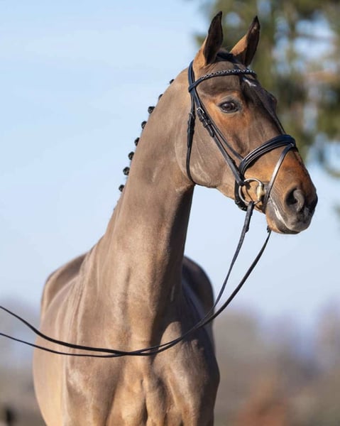 Calimera es una yegua Oldenburgo muy dulce y tranquila, nacida en 2019. Es bien educada, equilibrada y muy confiable. Hemos salido varias veces a pasear y siempre se muestra relajada y segura. Cargar en el remolque no es un problema, y también se presenta sin inconvenientes ante el herrador. Todo lo que hace por primera vez lo afronta con valentía y serenidad. No le teme a nada y mantiene la cabeza fría en cualquier situación. Incluso niños ya han montado sobre ella, y siempre es muy cuidadosa y amable con ellos. Aunque es joven, rápidamente se olvida esa juventud porque se comporta de manera madura y estable. Tiene muchas ganas de aprender y quiere complacer a su jinete. Me gustaría que encuentre un compañero fijo que la quiera y siga ayudándola a desarrollarse. Calimera fue comprada en una subasta. Como no dispongo de vídeos recientes, utilizo el vídeo de la subasta. Por motivos de tiempo y económicos, debe buscar un nuevo hogar. Lo más importante es que encuentre un hogar amoroso.