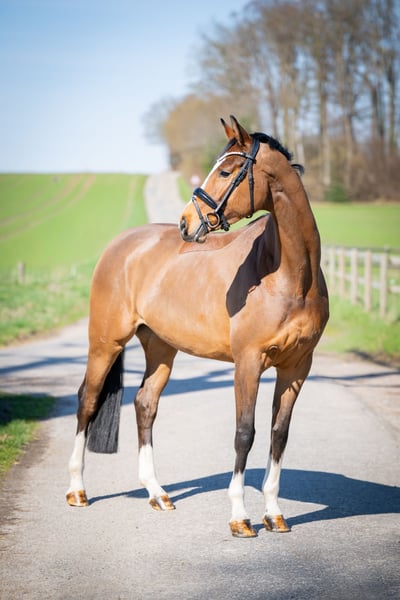 ⚜️zu verkaufen ⚜️ * Stute * 2020 * ca 1,67 m * Conthargos/ Zatinus * Röntgenbilder vorhanden Wunderschöne, menschenbezogene Stute mit viel Potenzial für Sport & Freizeit 6-jährige, sehr menschenbezogene und brave Stute mit toller Zeichnung zu verkaufen. Aufgrund später Ausbildung noch nicht voll gefördert, lässt sich aber bereits sicher auf A-Niveau dressurmäßig arbeiten. Im Springen zeigt sie viel Qualität und Vermögen, absolviert einen kleinen A-Parcours problemlos und bringt beste Voraussetzungen für den gehobenen Springsport mit. Sehr unkompliziert im Umgang, verträglich mit anderen Pferden und auch als Familien- oder Freizeitpferd bestens geeignet. Gesund, guter TÜV vorhanden. Wer diese junge Stute kennen lernen möchte, meldet sich gerne unter folgender Telefonnummer 0173 9954104 📞