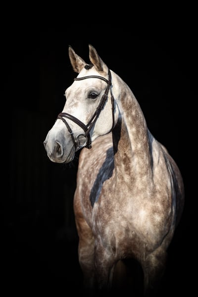 Adinija HK is a large-framed, typy gray mare. She impresses over jumps with quick reflexes, great ability, and good caution – a combination that makes her an exciting young prospect for show jumping. The daughter of Armison out of a Carinjo x Carthago Z mother comes from successful jumping lines and thus has the best qualities for a sporting career. Adinija HK has only started her competition career at the age of five and is therefore still a bit green, but she shows herself to be very eager to learn, attentive, and motivated. With each training session, she is developing further and gaining increasing experience. Due to her positive attitude, good riding qualities, and great ability, Adinija HK is equally interesting for the ambitious amateur as well as for the professional looking for a horse with potential.