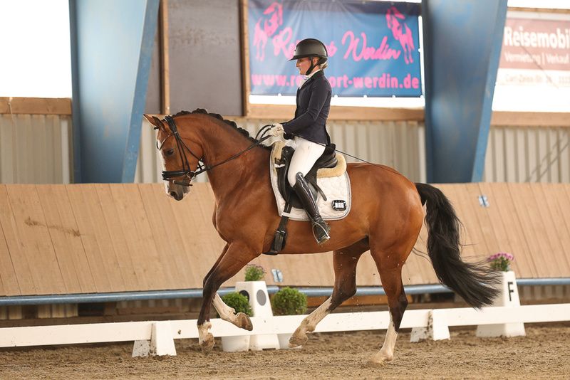 Diese bildschöne, toll gezeichnete Stute ist ein wahrer Sympathieträger und weiß in allen Disziplinen zu überzeugen. Ihre Erfolge sprechen für sich: Springpferde A siegreich, L Dressur siegreich und zahlreiche Eignungen siegreich. Stutenleitungsprüfung als Hautprämienanwärterin abgeschlossen. Aktuell befindet sich Ce de auf sicherem Dressurpferde M Niveau. Ein Parcours auf A Niveau oder ein Ausritt macht ihr jederzeit Freude. Eine tolle Gelegenheit für Ponyumsteiger oder ambitionierte Freizeitreiter. Die Stute ist Pssm Träger und wird deshalb getreidefrei gefüttert. Wir konnten keine Leistungseinschränkung feststellen. Aufgrund des Befundes wird sie unter Wert angeboten. Das Pferd wird nicht zur Verfügung gestellt. Kontakt nur telefonisch.