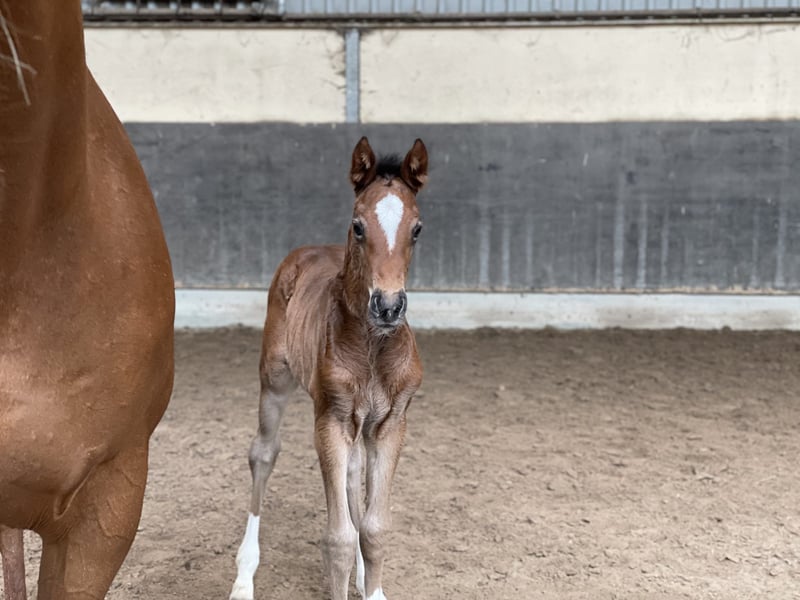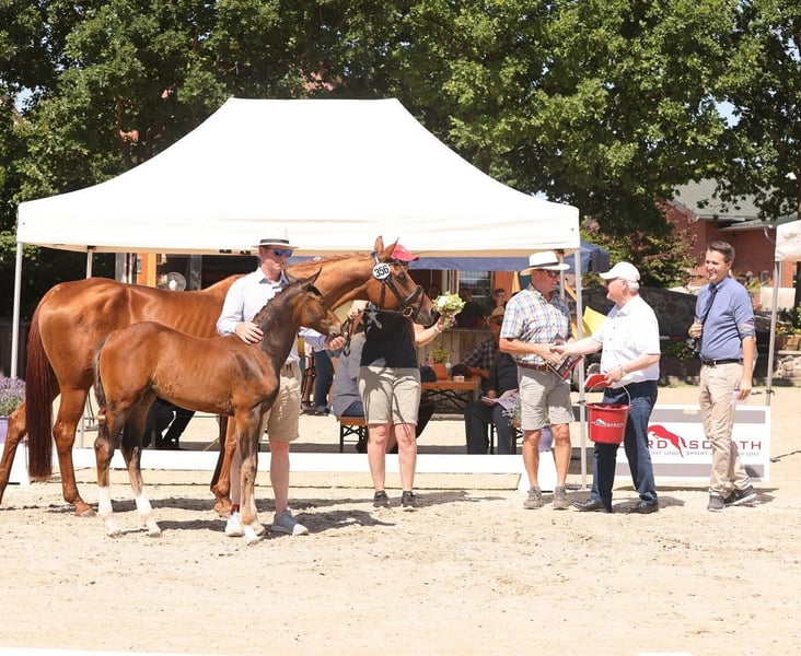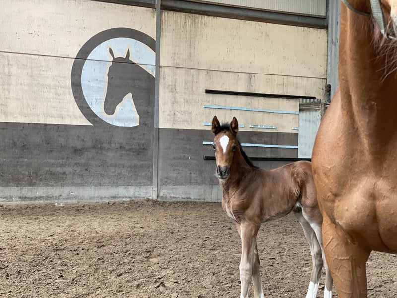 Easy Jet x Landor S geb. 10-04-2025 Herkunft von der Vollschwester von Lycos (Landor S x Zeus) springt Easyroos H sofort ins Auge. Mit ihrem eleganten, lebhaften Erscheinungsbild und ihrem zuverlässigen, menschenbezogenen Charakter zeigt sich dieses braune Stutfohlen mühelos als Versprechen für die Zukunft. Ihre große Stockmaß verleiht ihr nicht nur Anziehungskraft, sondern hebt auch ihr Potenzial hervor. Easyroos H ist bekannt für ihre gelassene Haltung, Lernbereitschaft und positive Einstellung – eine ideale Kombination mit so viel Qualität und Freundlichkeit. Elegante Bewegungstalente werden mühelos mit einem freundlichen, bravem Temperament kombiniert, was sie leicht handhabbar macht. Für ambitionierte Liebhaber, die Wert auf Zuverlässigkeit und Zukunftsperspektive legen, stellt Easyroos H das ideale Stutfohlen dar: bereit, gemeinsam große Schritte in Richtung Erfolg im Springsport zu machen. Wer sich für Easyroos H entscheidet, investiert heute in bewährte Qualität und in eine vielversprechende Zukunft.