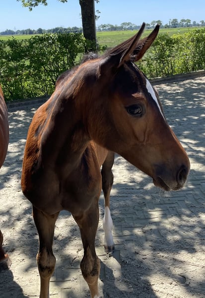 Easy Jet x Landor S born 10-04-2025 Coming from the full sister of Lycos (Landor S x Zeus), Easyroos H immediately catches the eye. With an elegant, lively appearance and reliable, people-oriented character traits, this brown filly effortlessly presents herself as a promise for the future. Her large height not only gives her allure but also emphasizes her potential. Easyroos H is known for her down-to-earth attitude, eagerness to learn, and positive mindset—an ideal combination with so much quality and kindness. Elegant movement talents are effortlessly combined with a friendly, well-mannered temperament, making her easy to handle. For ambitious enthusiasts who value reliability and future prospects, Easyroos H is the ideal filly: ready to take great steps towards success in show jumping together. Choosing Easyroos H means investing today in proven quality and a promising future.