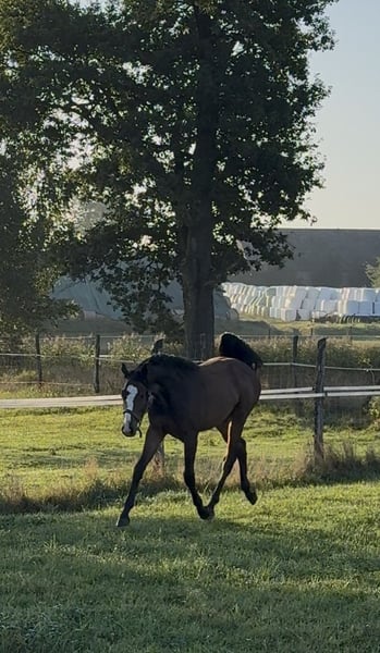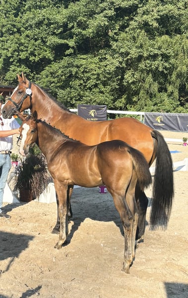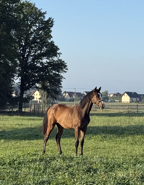 Tokino K to wałach urodzony 2.05.2024r. W sierpniu tego samego roku zdobył premię oldenburską. Koń jest poprawnej budowy o długich prostych nogach z prawidłowym ukątowaniem stawów skokowych i pęcin, prawidłowe kopyta. Posiada świetny bardzo sprężysty i lekki ruch. Spokojny w obejściu, przyjacielski i pozytywnie nastawiony do człowieka, nauczony wszystkich zabiegów pielęgnacyjnych. Podaje nogi, jest grzeczny przy kowalu. Regularnie werkowany i szczepiony. Sporadycznie w sytuacjach stresowych zdarza mu się łykać. Koń o ogromnym potencjalne sportowym. Kastracja we wrześniu 2025r. Koń przebywa na ogromnych pastwiskach - chów wolnowybiegowy. Wzrost: 157 cm - mierzony w kłębie, zapowiada się na wysokiego konia. Ojciec 170 cm, Matka 165 cm Tobaro (ojciec) okazał się bezkonkurencyjny podczas kwalifikacji ogierów skokowych na Oldenburg International (OS), zdecydowanie wyróżniając się na tle konkurencji. Taka dominacja na tego typu wydarzeniu zdarza się niezwykle rzadko – zaprezentował się w znakomitej formie. To koń o wyjątkowej inteligencji – zawsze skupiony na jeźdźcu i zdeterminowany, by wykonać każde zadanie jak najlepiej. W próbie skoków luzem wykazał się równymi, swobodnymi skokami oraz dużym potencjałem. Pod względem rodowodu trudno byłoby sobie wyobrazić bardziej nowoczesne pochodzenie. Tobaro ukończył próbę dzielności w Adelheidsdorfie w listopadzie 2023 roku jako drugi rezerwowy zwycięzca, uzyskując łączną ocenę 8,53 pkt. Otrzymał 8,5 pkt m.in. za temperament, chęć do pracy, kłus, jezdność, technikę skoku i ogólne wrażenie. Co więcej, jeździec testowy ocenił go bardzo wysoko, przyznając aż 9,25 pkt. Tobago Z, ojciec Tobaro, ma na koncie zwycięstwa w prestiżowych zawodach Rolex Grand Prix w Aachen i Den Bosch, a także srebrny medal zdobyty z drużyną na Mistrzostwach Europy w 2019 roku. Jego potomstwo, w tym ogier Orak d'Hamwyck, już teraz z powodzeniem uczestniczy w programach hodowlanych. Po stronie matki takie sławy jak Maestro vd Bisschop, Cornet Obolensky. Filmy z ruchu mogę podesłać na whatsup. Po więcej informacji proszę pisać lub dzwonić pod nr tel: 792 426 668 Cena: 29 000 tyś do negocjacji