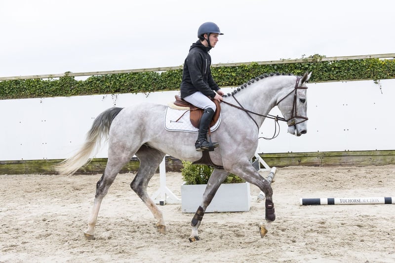 Galaxy Blue PS is een grootramig, imposant gebouwd sportpaard met veel uitstraling en kwaliteit. Een moderne schimmel die direct opvalt door zijn formaat, balans en manier van bewegen. Hij laat zich voor de korte tijd dat hij onder het zadel is al fijn rijden en toont een goede instelling en werkwilligheid. Op de sprong toont hij vermogen en een zeer goede afdruk. Voor zo’n groot paard springt hij met opvallend veel techniek, is hij lichtvoetig en snel van de grond. Hij laat een sterke achterhandtechniek zien en heeft een zeer goede inzet op de sprong. Een paard dat zowel kracht als kwaliteit combineert. Hij is nog maar kort onder het zadel, maar laat zien dat hij alles in zich heeft om zich verder te ontwikkelen. Een paard dat zich fijn laat rijden en zelfs goed zou kunnen dienen voor de Amerikaanse markt als equitation paard. Vader Cosmos BH springt op 1.60m niveau en komt uit de lijn van Chellano Alpha Z en Contender, wat garant staat voor vermogen en techniek. Moeder Chaquicka PS springt op 1.50m niveau en is een dochter van Chacco-Blue (1.60m), één van de beste verervers wereldwijd. De moederlijn is uitzonderlijk sterk en brengt meerdere paarden op topniveau: Catalina (1.60m) Constara (1.60m) Chonick (1.50m) Chaverto (1.50m) Chacco Stara (1.50m) Lucky Charm (1.50m) Contha Quicka PS (1.45m) Zoncordes (1.45m) meerdere paarden op 1.30m–1.60m niveau Een stam met bewezen prestaties tot op het hoogste niveau.