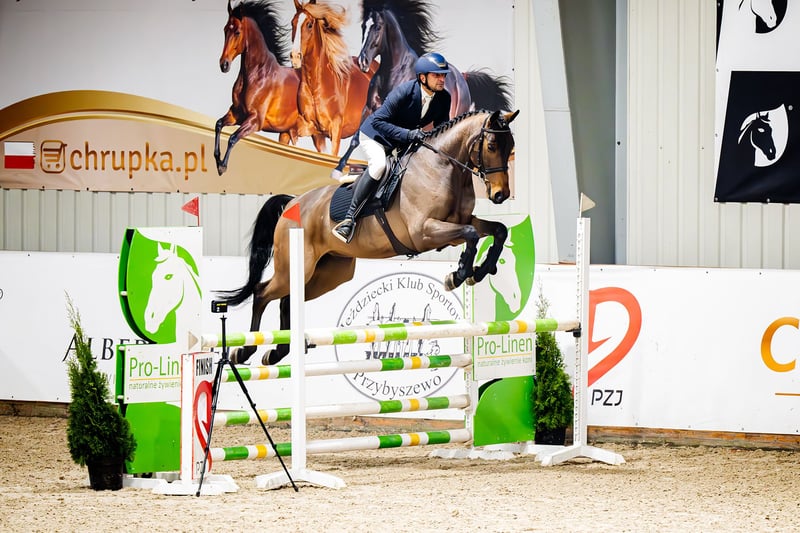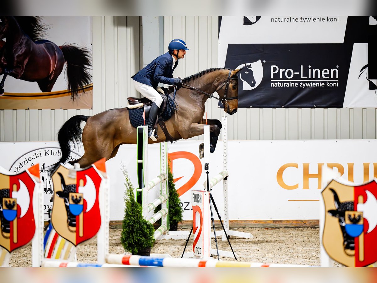 Zilan S (Zinedream - Landprinz I - Azarro), *2020, Oldenburg International (OS), ok. 166 cm Zilan S to niezwykle urodziwy, ultranowoczesny i atletyczny 5-letni wałach, który urzeka wspaniałym charakterem oraz bardzo dobrą jezdnością i nastawieniem do pracy. Całość dopełniają trzy bardzo dobre chody podstawowe, przy czym szczególną uwagę zwraca galop. Obecnie Zilan S startuje w konkursach do klasy P (1,10 m). Ojciec, Zinedream to międzynarodowy zwycięzca 5* Grand Prix, który błyszczy w międzynarodowym sporcie pod wodzą drużynowego wicemistrza Europy Davida Willa. W 2024 roku para świetnie rozpoczęła sezon od zwycięstwa na najwyższym poziomie. Na CSIO5* w Abu Dhabi/UAE Zinedream i David zwyciężyli w Dużej Rundzie 1,60 m. Galopowali do mety około 1,5 sekundy szybciej niż numer jeden na świecie Henrik von Eckermann i błyskawiczny King Edward. Największe sukcesy, takie jak zwycięstwo w konkursie skoków Global Champions League (1,60 m) w Riesenbeck, zwycięstwo na etapie Pucharu Świata w Rijadzie (1,60 m), srebro w Pucharze Narodów w Sharjah/UAE z niemiecką drużyną, zwycięstwo w Grand Prix w Ising, piąte miejsce w 4* Grand Prix (1,55 m) w Münster, szóste miejsce w Grand Prix (1,55 m) w Al Ain (ZEA) oraz cała seria międzynarodowych zwycięstw i miejsc sprawiają, że Zinedream jest światowej klasy sportowcem. Matka, klacz premiowana Luna Llena, jest córką holsztyńskiego ogiera Landprinz I, zwycięzcy próby dzielności ogierów w München-Riem. Babka Antonia odnosiła sukcesy w skokach przez przeszkody do 1,30 m, a jej półsiostra Laura do 1,40 m. Oldenburski ogier Azarro zajął ósme miejsce na Mistrzostwach Niemiec w 1995 roku pod Holgerem Wulschnerem. Ponadto wygrał wiele konkursów skoków przez przeszkody niemieckiej klasy S (1,40 m) i odniósł sukces na CHIO Aachen w 1996 roku. Potomstwo klaczy Luna Llena z sukcesami startuje w skokach przez przeszkody. Cumbela (Chevalier S) (po Cancoon) osiągał międzynarodowe sukcesy do poziomu 1,60 m pod Maureen Bonder (NED), a Carmen S (po Cancoon) startowała z powodzeniem do poziomu 1,35 m. Carmen S jest matką klaczy Stakkato Lazar, która pod Tomaszem Miśkiewiczem (POL) osiągała międzynarodowe sukcesy do poziomu 1,60 m i została Mistrzynią Polski w skokach przez przeszkody w 2023 roku. Jako 5-latka Stakkato Lazar zajęła drugie miejsce w Mistrzostwach Polski Młodych Koni, a rok później zwyciężyła w kategorii sześciolatków. Horsetelex: https://www.horsetelex.com/horses/pedigree/2232303/zilan-s RTG zrobione w wieku 2,5 lat do wglądu - oczywiście jest możliwość wykonania nowych badań. Możliwość organizacji transportu. Więcej filmów wyślę przez Whatsapp.