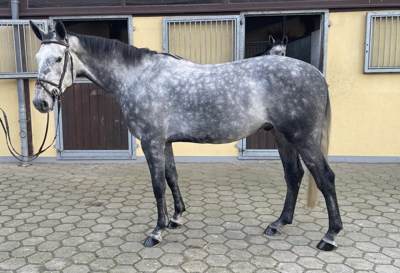 Young Show Jumping Prospect “Poker” Name: Poker Age: 5 years Pedigree: Poker de Mariposa x Emir Achievements: Winner up to 1.20 m show jumping, placed up to 1.40 m Gender: Gelding The 5-year-old show jumping gelding Poker impresses with a modern, athletic pedigree and already demonstrates impressive jumping quality. His previous competition record includes wins in 1.10 m classes and placings up to 1.40 m, clearly highlighting his great potential for future success in the sport. Poker is a willing, ambitious, and very perfectionist gelding who always aims to please his rider. He works with focus, learns quickly, and shows motivation, attentiveness, and readiness to perform in daily training. With the right guidance, Poker is a promising young horse for advanced show jumping. Special features: – Careful and clean technique over fences – Hardworking, ambitious, and motivated – Sporty, modern appearance Suitable for ambitious competition riders seeking a talented young athlete with potential. Interested parties are welcome to contact us by message or phone. Poker can be viewed and tried under saddle at any time by arrangement.