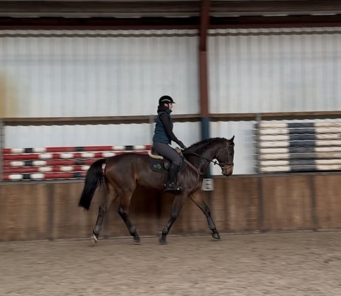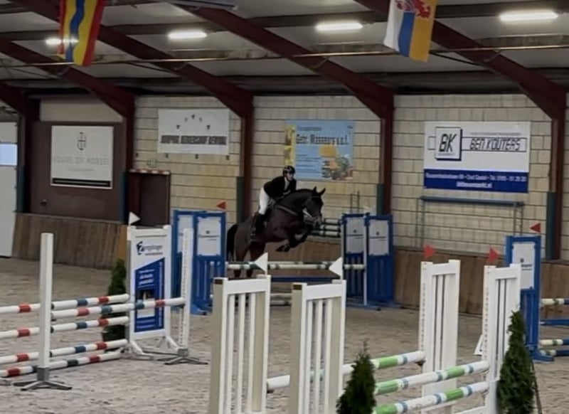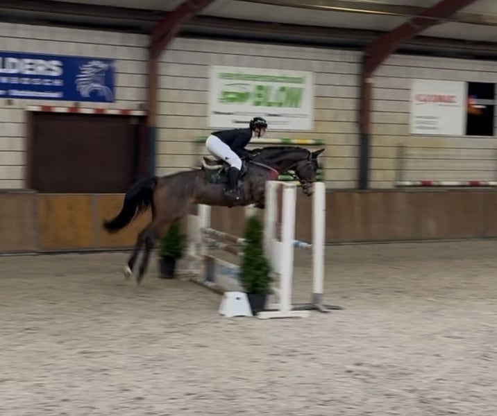 Puissante jument avec beaucoup de potentiel. Âgée de 6 ans, 1,68 m. Holsteiner par Conthargos x Clinton x For Pleasure. Montre beaucoup de qualité, est douce et possède un caractère agréable. Toujours volontaire pour aller de l'autre côté. Expérience en concours jusqu'à 1,00 m, se comporte très bien. N’est ni curieuse ni effrayée. Actuellement en entraînement avancé et peut progresser jusqu’à 1,10 m. Facile à monter en dressage. Pas forte, saute également agréablement ses obstacles. Réagit bien aux aides. ✅ En bonne santé et sans défauts. 🎥 Vidéo disponible. ☎️ 0031-610197456
