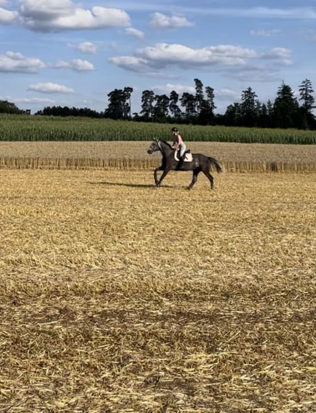 Aufgrund persönlicher Gründe suche ich schweren Herzens für meinen 8-jährigen Oldenburger Wallach ein liebevolles, fürimmer Zuhause bei einem Menschen, der seine ruhige und ausgeglichene Art zu schätzen weiß. Er läuft zuverlässig auf gutem E-Niveau und zeigt Talent über kleine Sprünge – aber ist kein Selbstläufer! Wenn du ein sensibles Pferd mit großem Herzen suchst, das keinen ständigen Zug nach vorne oder dauerhafte Anlehnung verlangt, wirst du mit ihm einen treuen Partner finden. Er ist brav unter dem Sattel, ohne Unarten, zeigt sich im Gelände aber lebensfroh – kleine Freudensprünge oder leichte Schreckhaftigkeit gehören dazu, sind aber immer kontrollierbar. Außerdem liebt er Bodenarbeit und hat immer Spaß dabei Neues zu erlernen. Amore Mio wurde vor zwei Jahren mit equinem Asthma diagnostiziert. Mit täglicher Bewegung und regelmäßigem Inhalieren ist er stabil und meist normal belastbar. Wichtig ist mir: - Offenstall mit viel Auslauf - bestenfalls tägliche Bewegung - Staubarme Fütterung, idealerweise bedampftes Heu - Liebevoller Umgang ohne Leistungsdruck - Gerne Erfahrung mit Atemwegserkrankungen bei Pferden Er ist schmiedefromm, vorne beschlagen, und im Umgang ein echter Schatz. Einziges Manko: das Verladen in normalen Hängern ist aktuell schwierig. Zubehör wie Inhalator wird mitgegeben, ein passender Sattel kann gegen Aufpreis übernommen werden. Nur in allerbeste Hände – gelegentliche Besuche wären schön. Platz geht vor Preis.