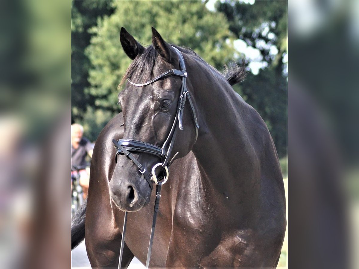 Large-framed, exceptionally beautiful black gelding seeking a 5-star home. Benni boasts an impressive size. He is currently at a solid L level. He learns quickly, so further training is definitely possible. He also enjoys rides in the terrain. A suitable horse for advanced leisure riding. Benni has a gentle temperament and is very human-oriented. A recent health certificate is available. He is farrier and loading friendly, familiar with group turnout, as well as open stable and box stall. Location: Lower Saxony near Oldenburg. Please contact exclusively via WhatsApp.