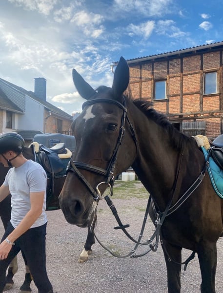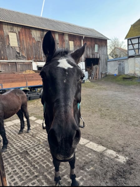 Dringlich.. und nicht nur merken! Zum Verkauf steht eine 19 Jährige Old stute mit guter Abstammung. Zubehör wie Sattel ect können mit erworben werden. -Vorne weg sie ist Kinder u Tierlieb- Concita 5 ist 1,70 groß, ging im Sport L-M (springen) denoch auch Dressurbetont aufgrund der Abstammung bei mir nur Freizeit.. Vom Vorbesitzer kam sie aus schlechter Haltung (Tiermessi) und befindet sich im Wiederaufbau. Sie ist gesund und munter trotz ihres Alters legt sie immer noch ein gutes Bild zurück benötigt keine Medikamente oder ähnliches. Sie ist reitbar trotz ihr alter sollte das reiten nicht jeden Tag an erster stelle stehen. Sie hatte bei den Vorbesitzern wahrscheinlich einen sehnenschaden gehabt dieser ist vollständig ausgeheilt. Sie ist leichtrittig und sofort bei Annahme der zügel da lässt sich auch von kleinen reiten aber trotzdem benötigt sie grenzen und eine Erfahrene Hand. Sie ist rangniedrig und sehr sozial wenn sie einen freund gefunden hat kann sie sich schwer trennen von ihm. Ich kam gut mit ihr zurecht da sie allerdings auch anderes kann und ihr stutenverhalten auch nutzen kann gebe ich sie nur in erfahrene Hände ab. Spritzen vom Tierarzt mag sie nicht aber wenn man das weis kann man sie Händeln. Im stall fängt sie bei Stress öfters an mit coppen (Aufsetzer) hatte bisher aber nie Probleme gemacht daher wünsche ich mir das sie nur im Winter nachts reinkommt da sie es nur im stall macht. Hufschmied und Hänger fahren sind kein Problem. Sie ist geimpft und frisch entwurmt die zähne wurden mitte 25 gemacht. Platz vor preis Ich wünsche mir nur einen guten platz für sie. Gegen Aufpreis kann sie auch gebracht werden :) Bitte meldet euch bei Interesse.